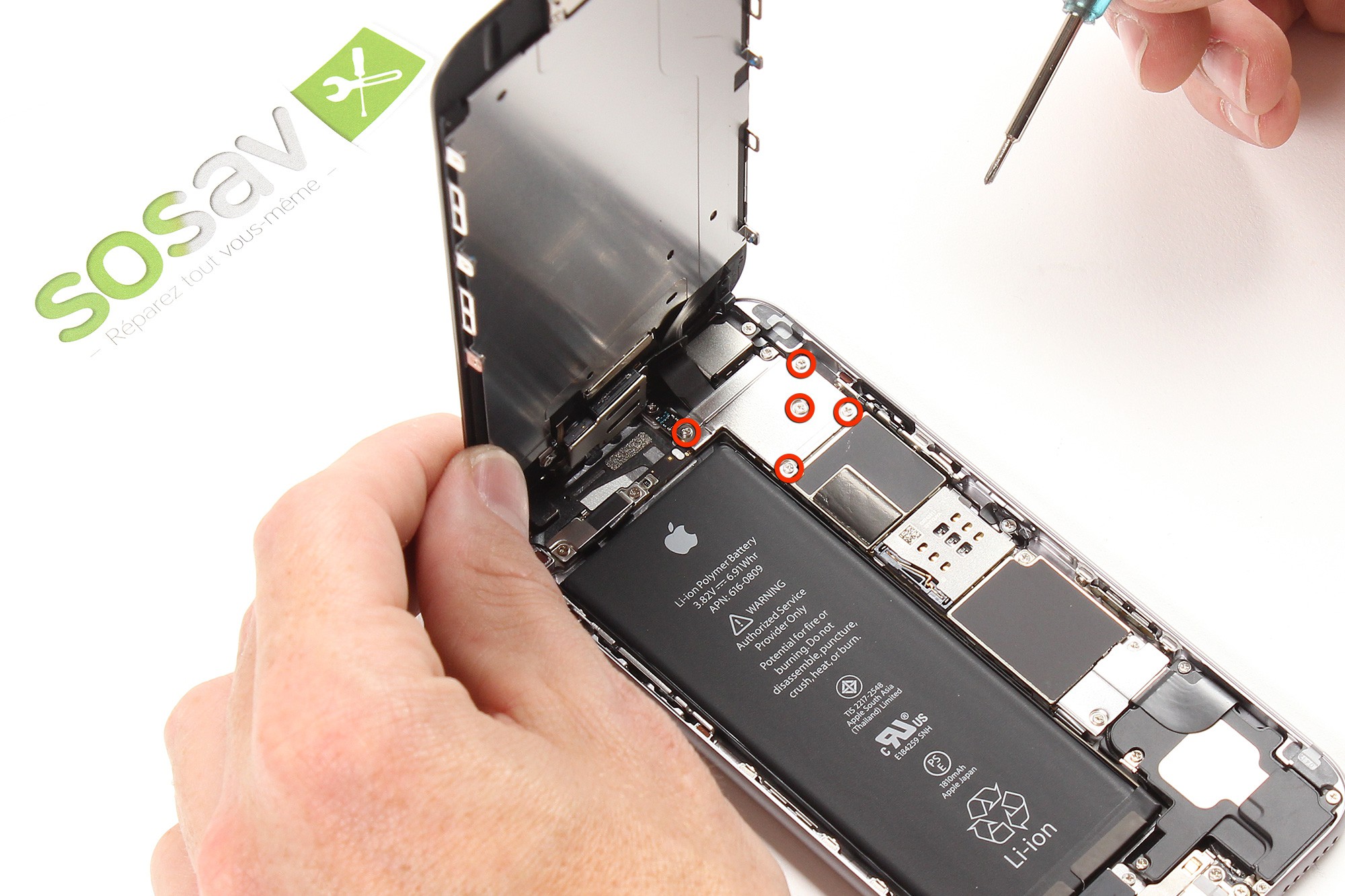 Ces vis sont localisées au niveau du connecteur lightning du téléphone.