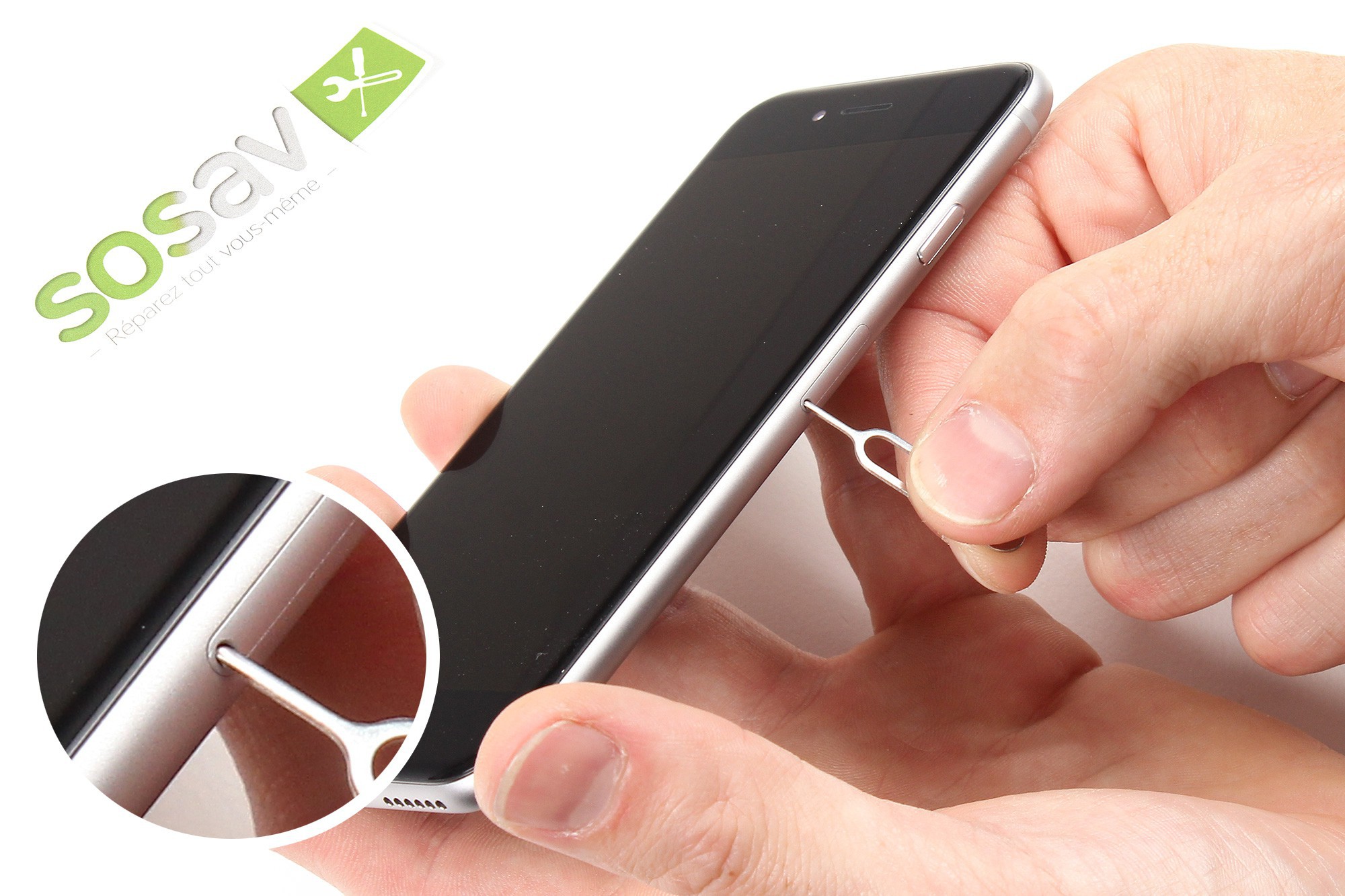 Le tiroir SIM de l'iPhone 6 est localisé sur la tranche droite du téléphone, près du bouton power (marche/arrêt/veille).