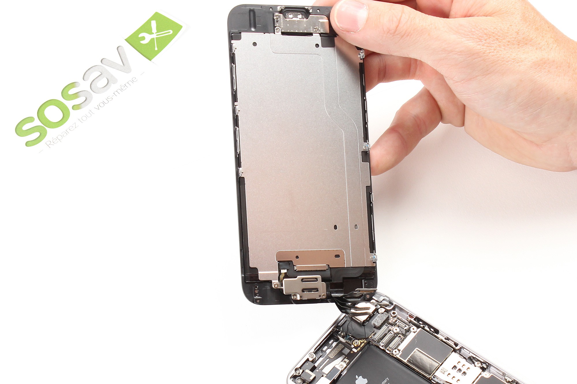 L'écran complet de l'iPhone 6 est désormais démonté.