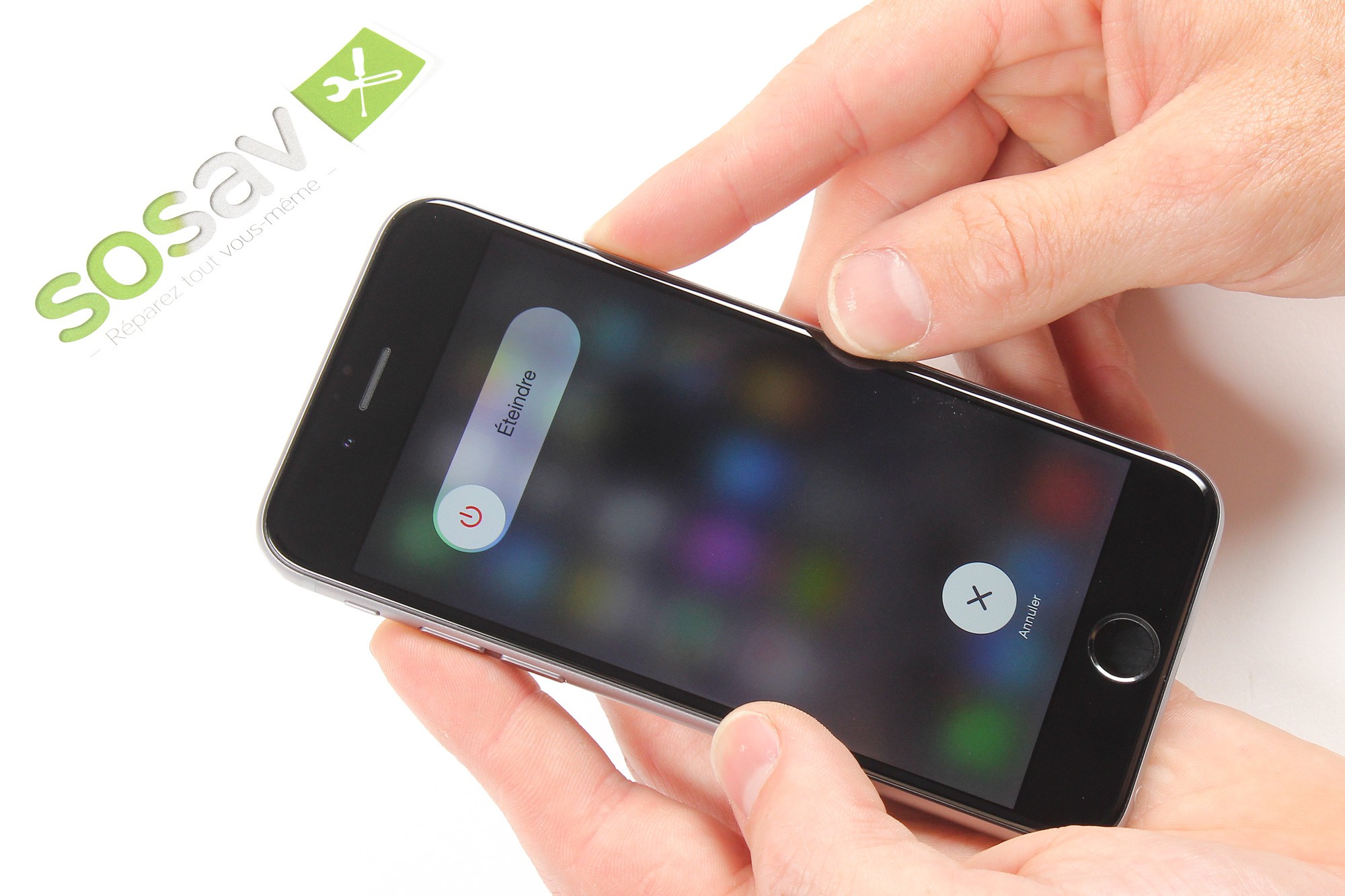 Pour cela, maintenez le bouton marche/arrêt (bouton power) localisé en haut du téléphone durant 6 secondes.