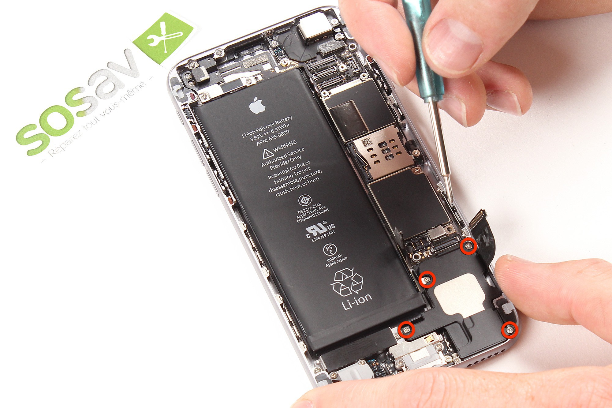 Ces vis sont localisées au niveau du connecteur lightning du téléphone.