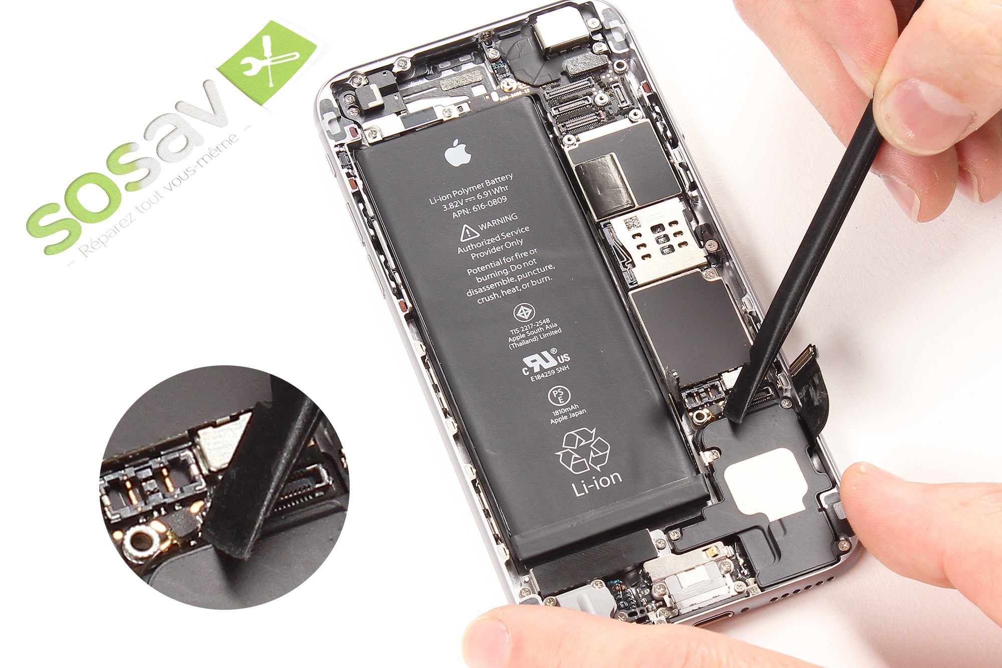 Réutilisez la spatule en nylon et faites délicatement levier afin de déconnecter la nappe de la batterie.