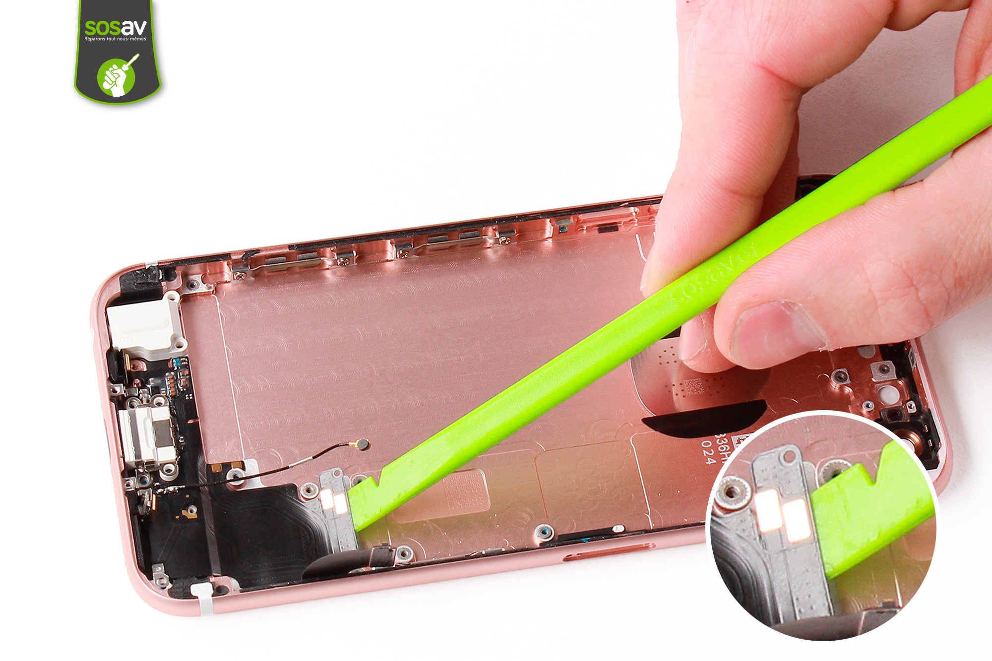 Toujours avec cette spatule en nylon, déconnectez l'antenne GSM.