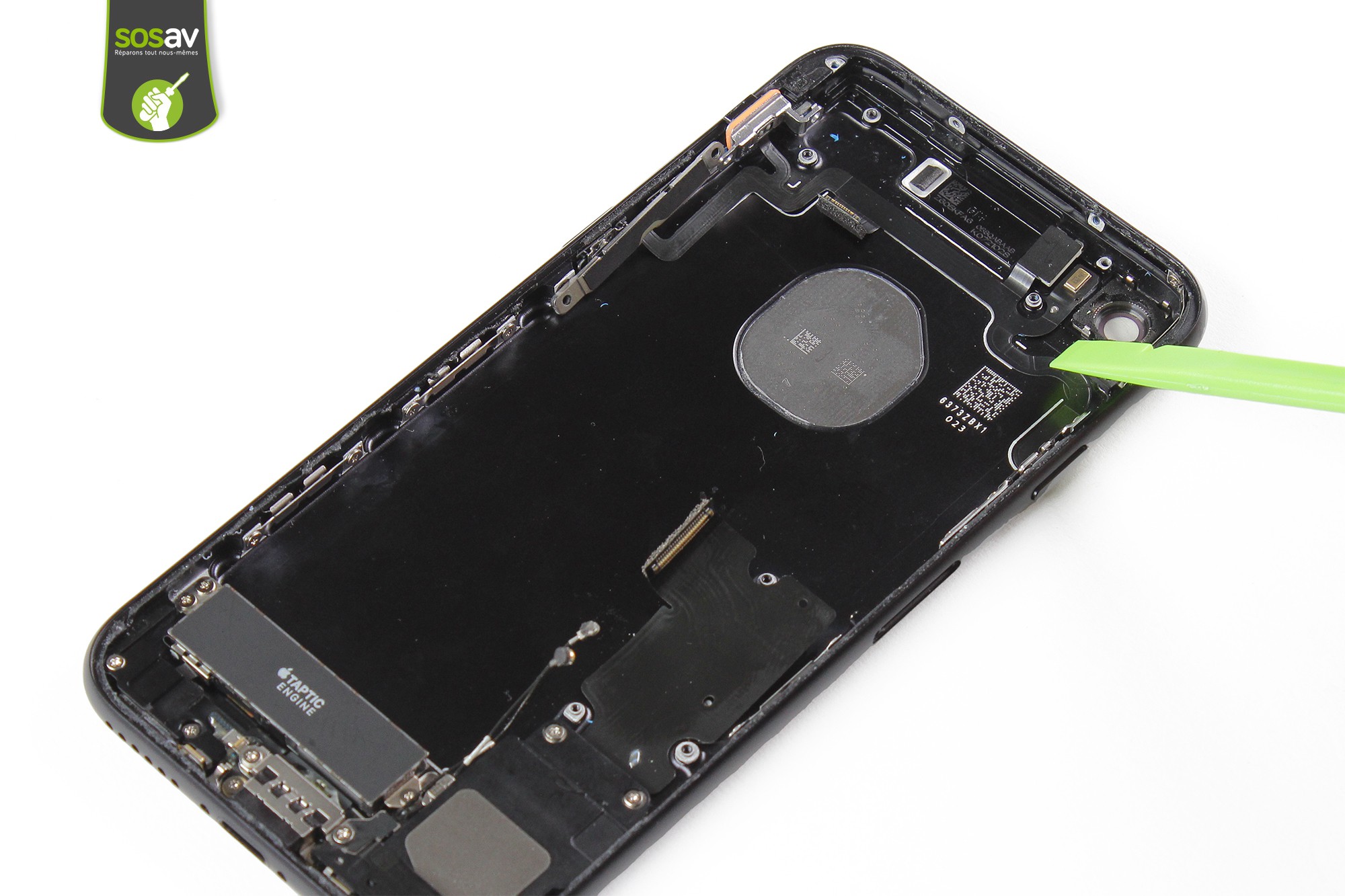 Avec la spatule en nylon, décollez le micro, ainsi que le flash de la caméra.