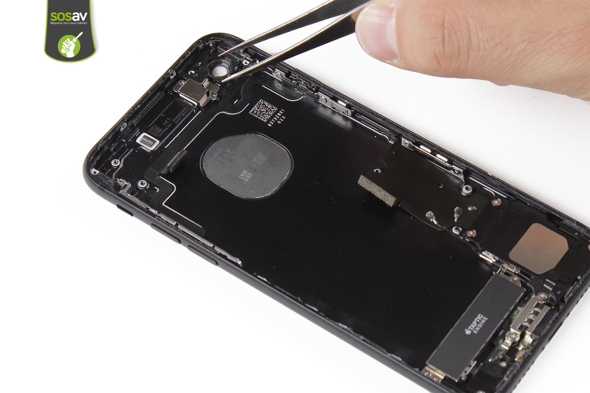 Toujours avec la spatule en nylon, délogez délicatement la caméra arrière de son emplacement.
