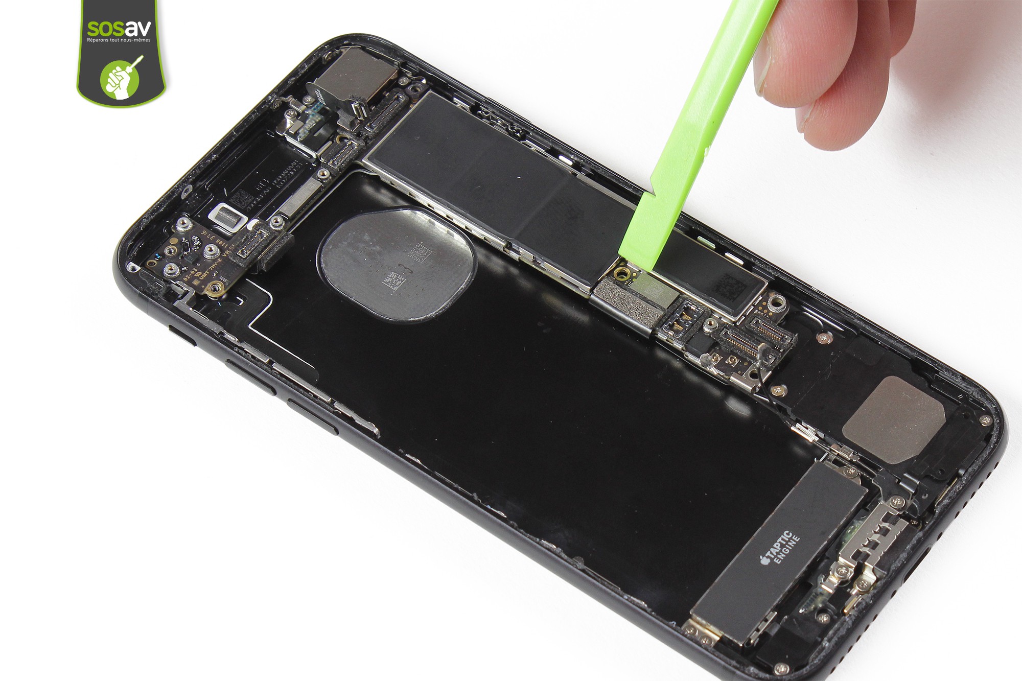 Une fois les 2 stickers retirés, soulevez la batterie avec la spatule n nylon.La batterie de votre iPhone 7 est retirée.