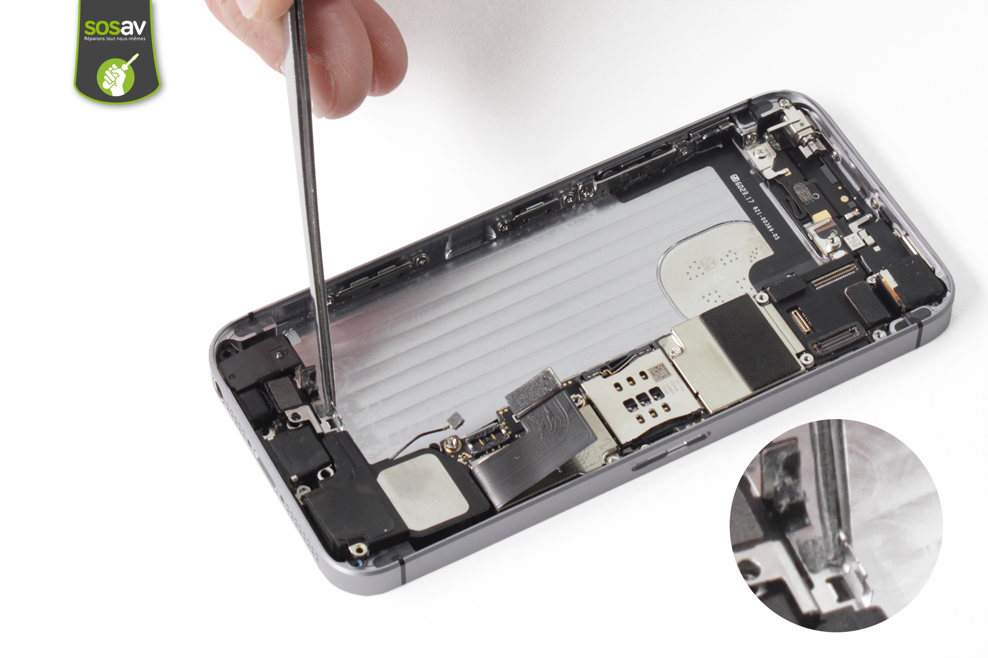 Pour remonter votre iPhone SE suivez ce guide en sens inverse.