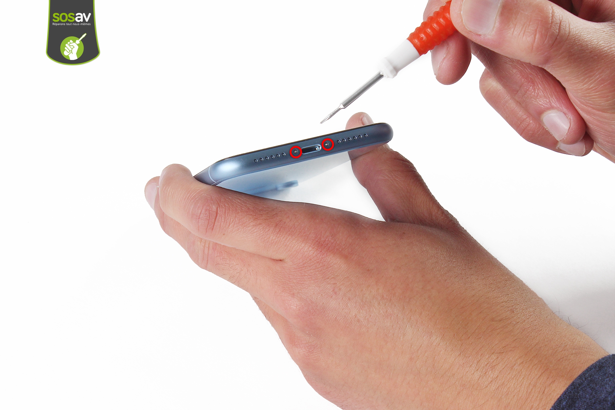 Nous débutons ce teardown par le retrait des deux vis pentalobes, le grand classique sur les iPhone.Deux vis pentalobes, on chauffe l'écran et c'est parti.