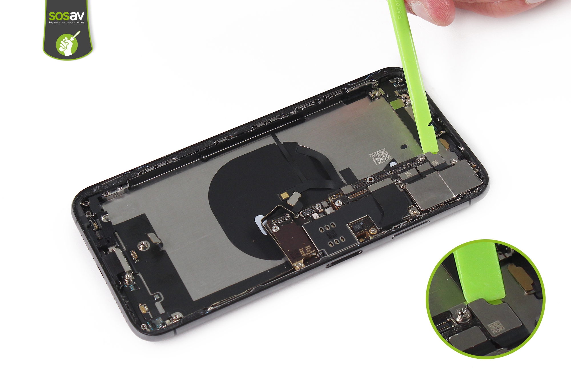 - Peu de colle rencontrée durant le démontage.Points négatifs :- Beaucoup, beaucoup d'étapes pour parvenir à démonter le téléphone entier : un vrai calvaire.