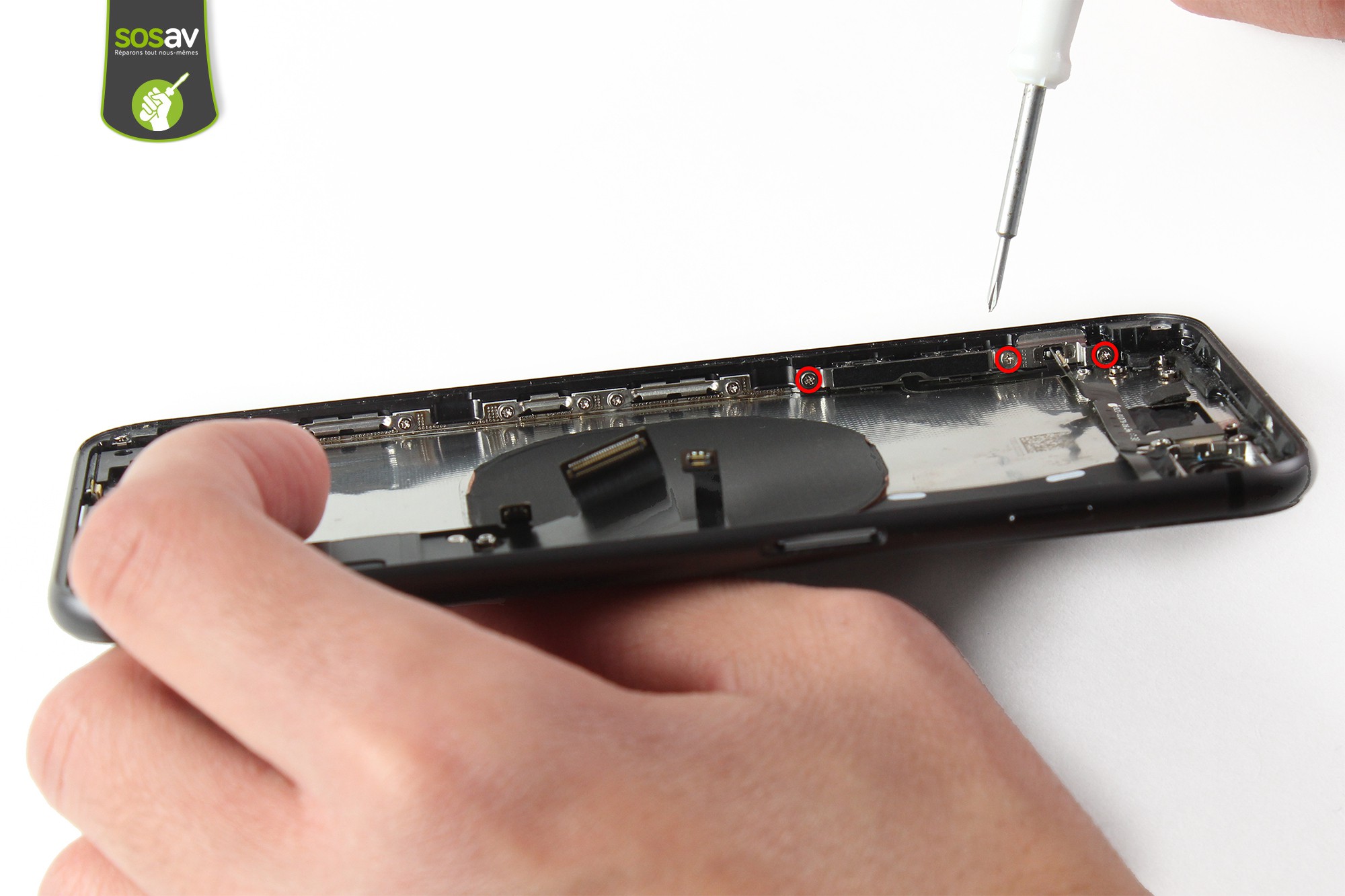 Maintenant que vous savez pourquoi c'est cette nappe qu'il faut changer, les techniciens de SOSav vous expliquent comment la remplacer à travers ce guide de réparation illustré et commenté. En quelques étapes, vous aurez toutes les clés pour devenir un vrai pro du dépannage. Vous verrez ainsi que réparer son iPhone est à la portée de tous et revient jusqu'à trois fois moins cher que de passer par un professionnel.