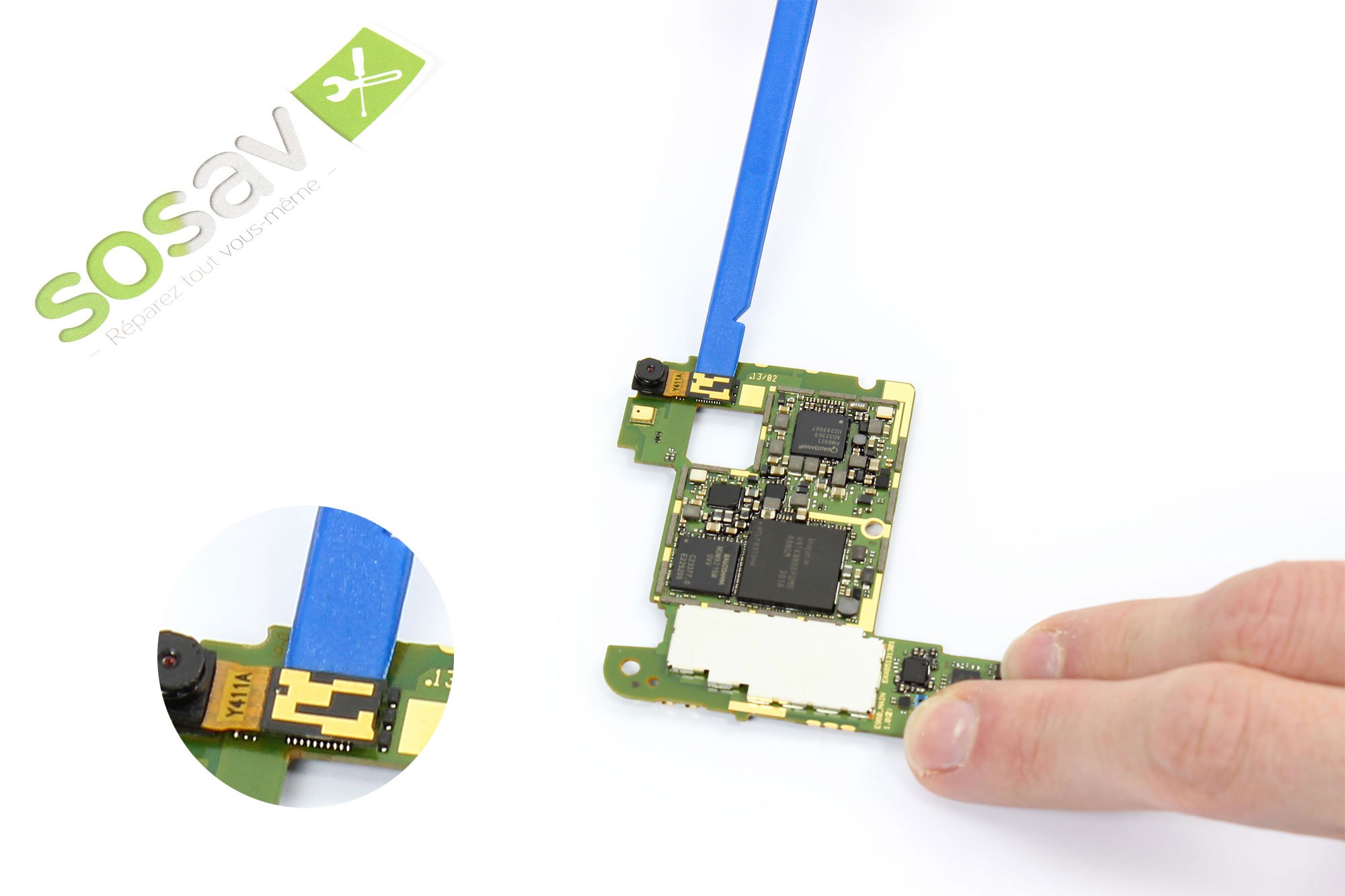 Avec le côté plat de la spatule, débranchez le connecteur afin de libérer la caméra avant.