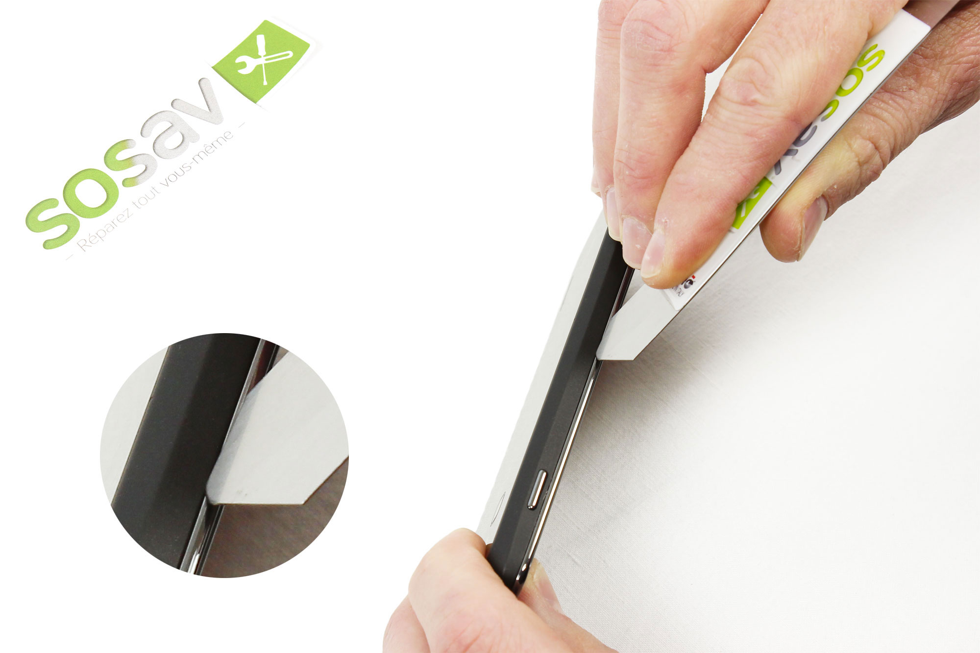 Insérez la spatule en métal, à la jonction entre la coque arrière et l'écran.