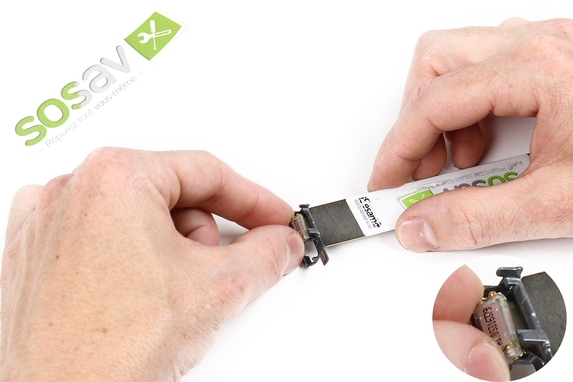 A l'aide d'une pince, saisissez puis ôtez la plaque de protection dévissée à l'étape précédente.