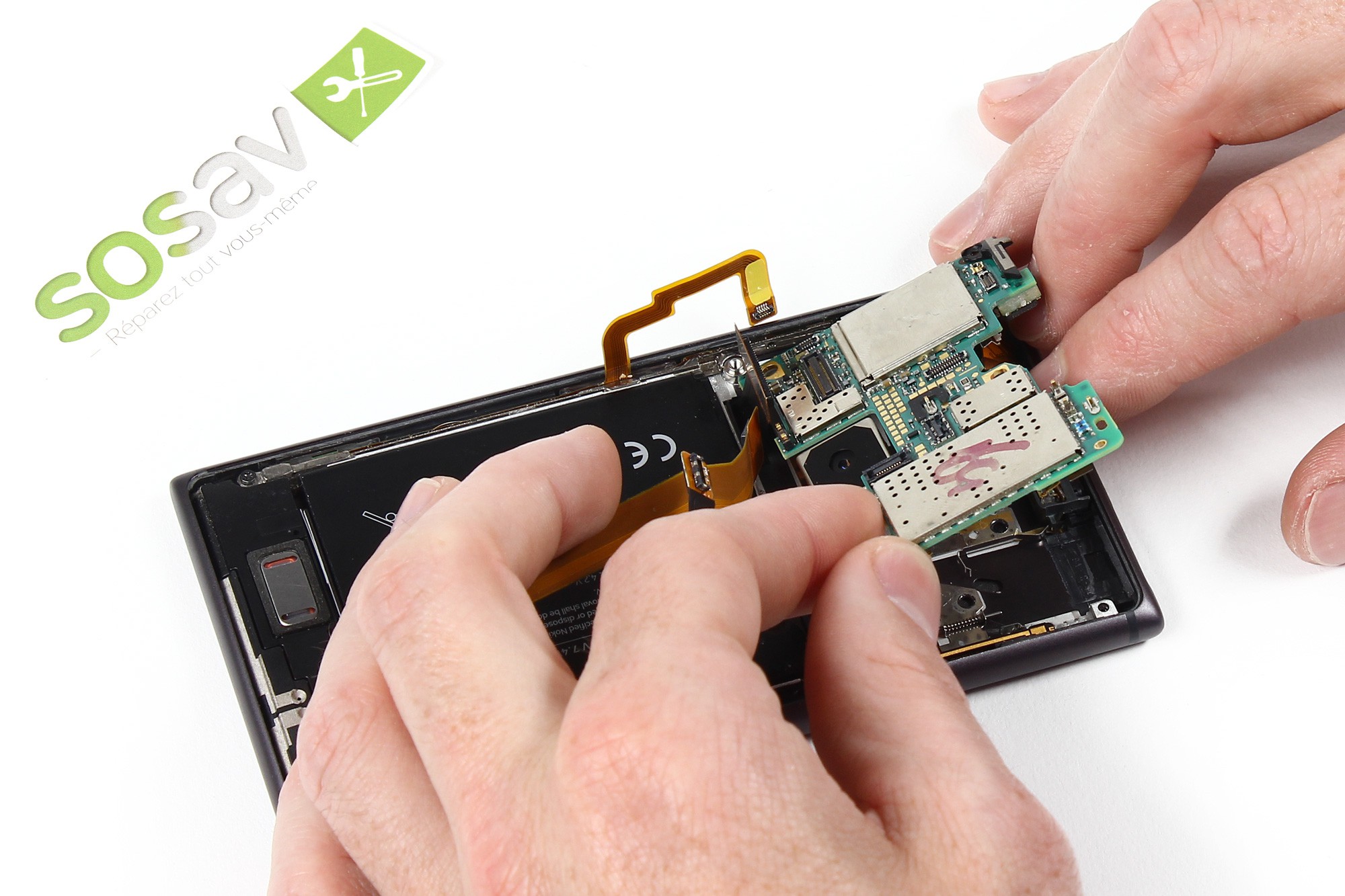 Vous pouvez désormais saisir la carte mère, puis l'extraire délicatement de votre Lumia 925.