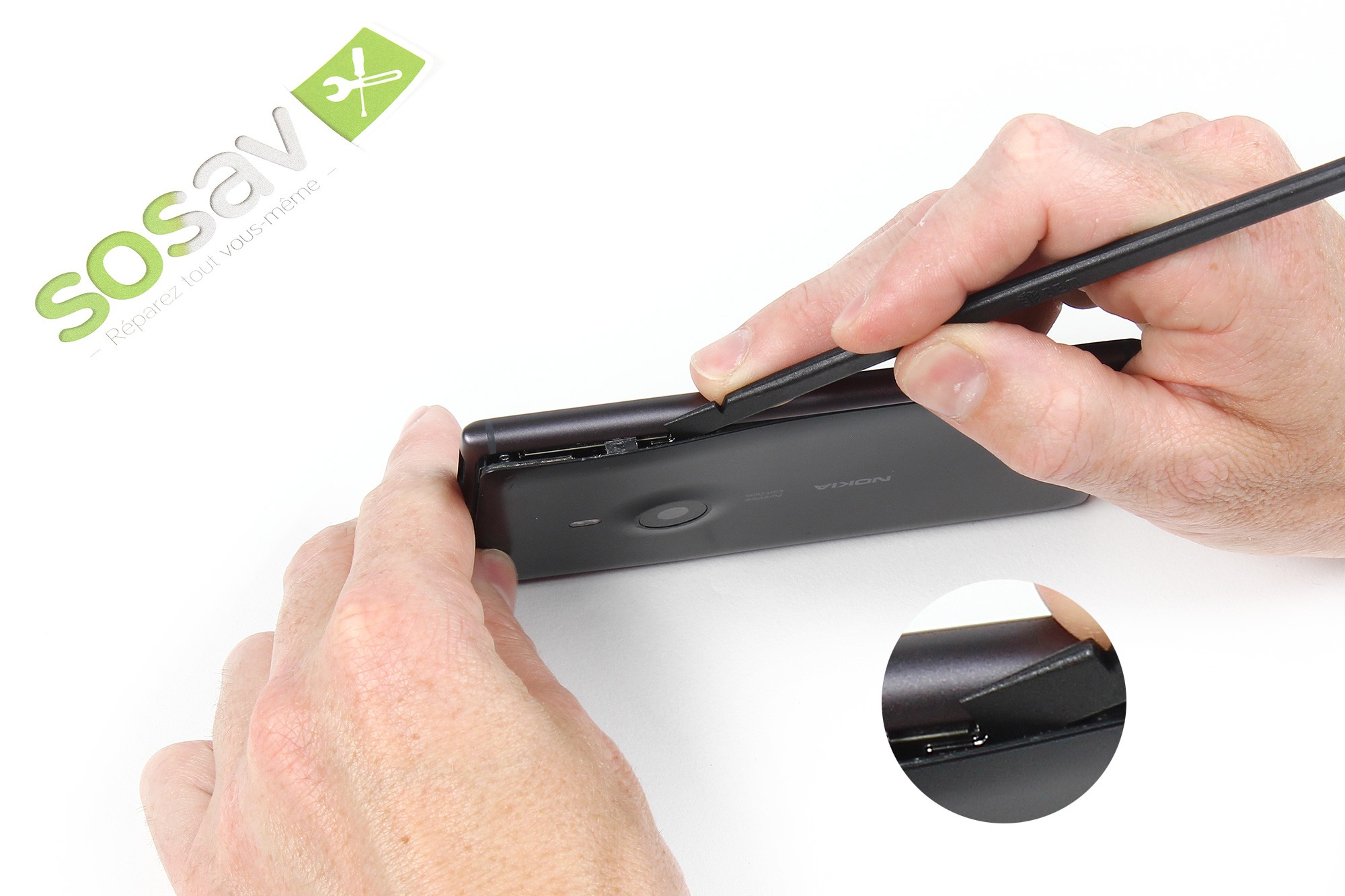 Faites ensuite levier, en douceur, afin de déclipser (soulever) la coque arrière.