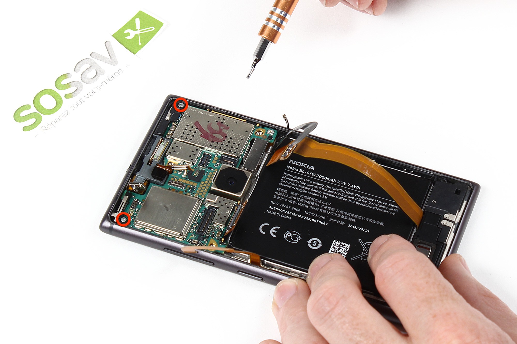 Celles-ci retiennent la carte mère au châssis du Nokia Lumia 925.