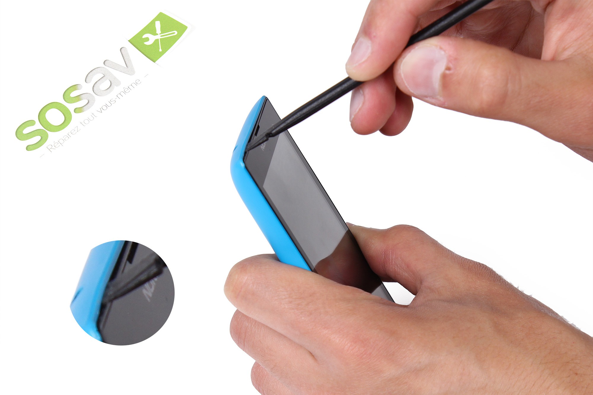 Toujours avec le côté plat de la spatule en nylon, répétez désormais l'opération avec la carte micro SD.