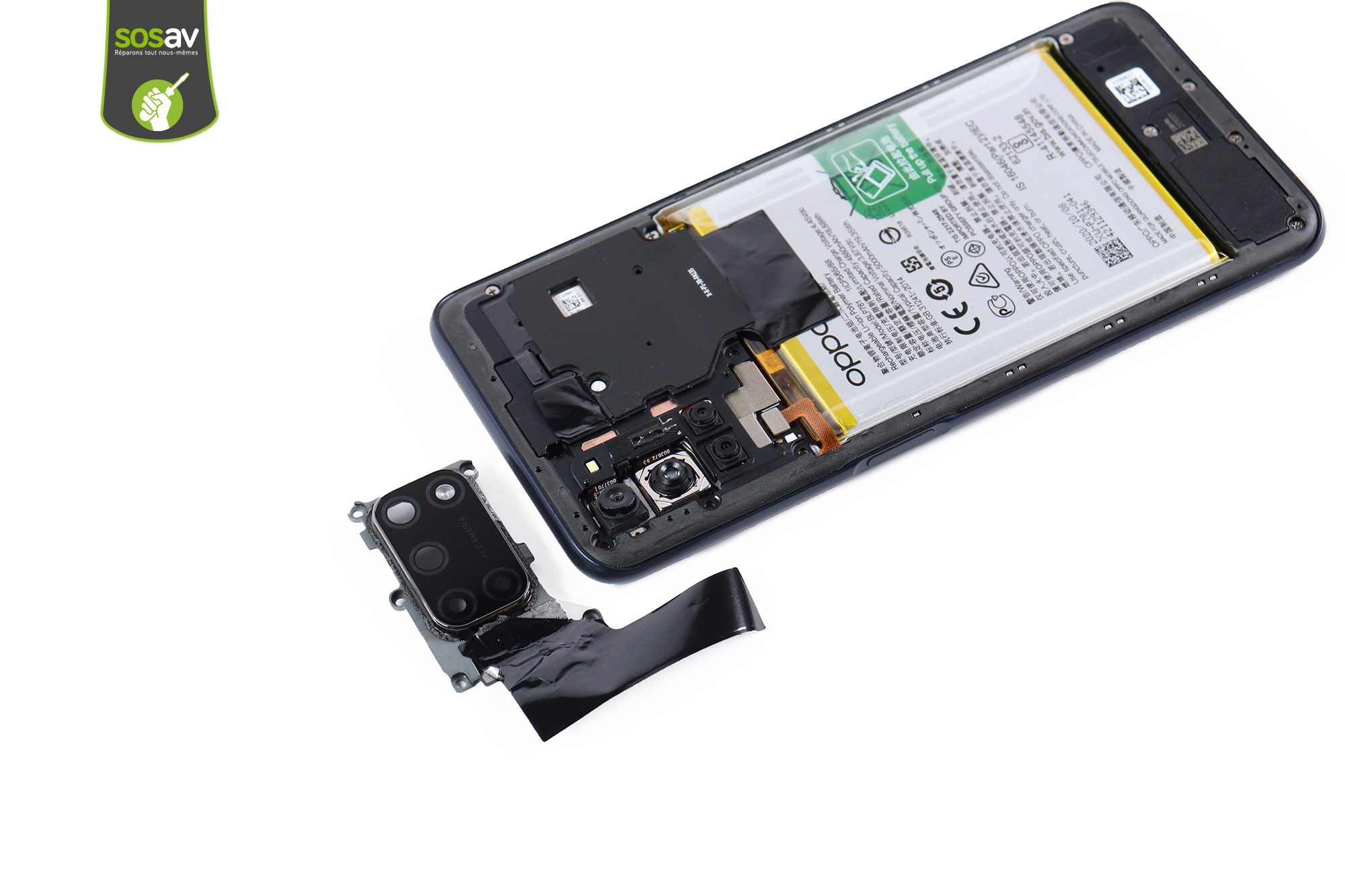 Impossible de passer un appel avec votre Oppo A72 car le son se coupe sans arrêt ? Le son reste faible alors que le volume est au maximum ? Le son saccade ou la voix des correspondants est inaudible ? Pourtant, tout va bien quand vous regardez une vidéo ou quand vous passez en mode haut-parleur... C'est parce qu'il s'agit de deux haut-parleurs différents ! Dans ce cas précis, c'est le haut-parleur interne Oppo A72 qui est défaillant. Il se situe en haut du téléphone afin de délivrer le son des appels directement au creux de votre oreille. Mais comptez sur les experts SOSav pour vous aider à travers ce guide de réparation illustré et commenté.