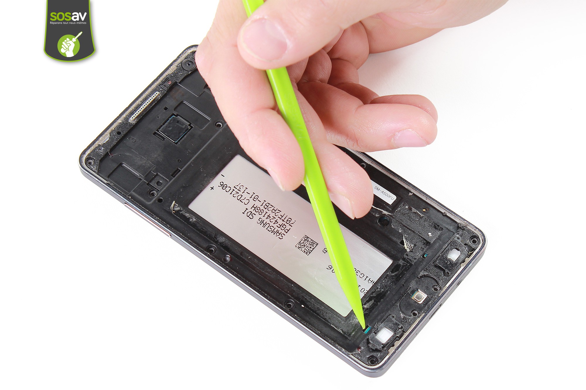 Avec le médiator, continuez la même opération sur le côté du Galaxy A5.