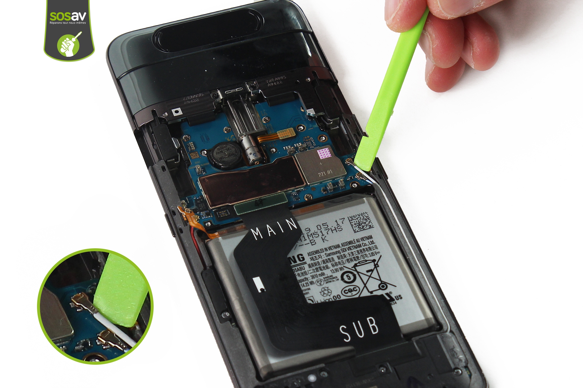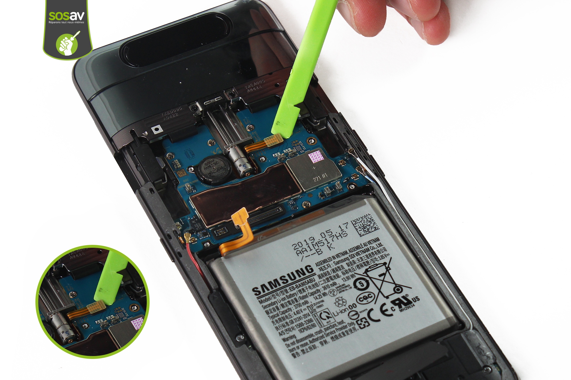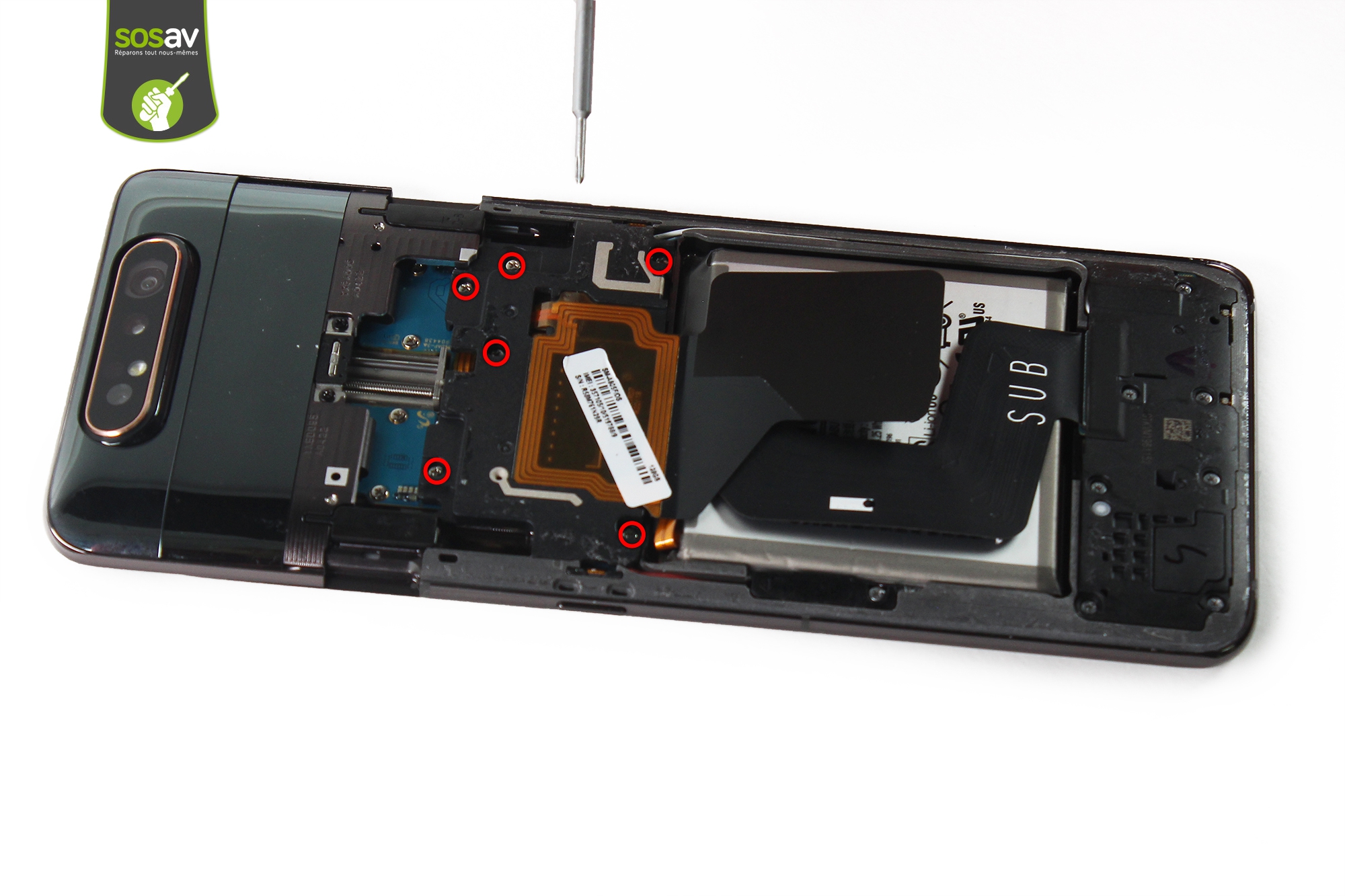 Si vous rencontrez des problèmes avec votre carte mère Galaxy A80, c'est le même guide de réparation pour le démontage ! Alors si vous devez remplacer votre caméra Galaxy A80 ou faire une intervention sur une carte mère après que votre smartphone est tombé dans l'eau, c'est par ici que ça se passe. Les experts de SOSav vous expliquent comment faire dans ce guide illustré et commenté. Chaque étape est détaillée pour vous permettre de changer votre caméra Galaxy A80 ou bien d'opter pour une carte mère reconditionnée à la place.