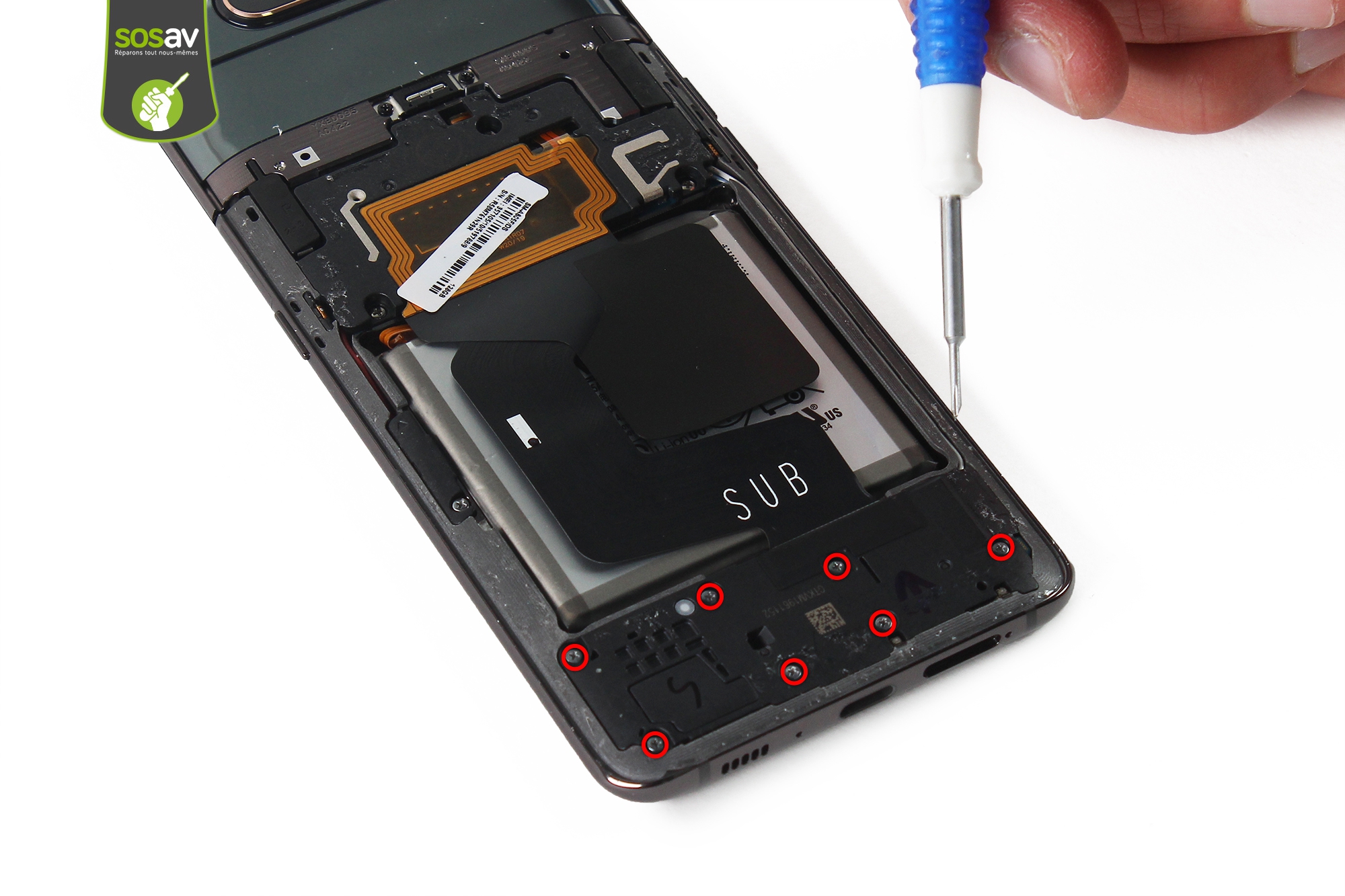 Vous n'entendez plus votre Galaxy A80 sonner ? Le son grésille quand vous regardez une vidéo ? Ou le son est très faible lorsque vous activez le mode haut-parleur tandis que le son des appels passe bien quand vous téléphonez normalement ? Le volume est pourtant au maximum et ce n'est pas un souci logiciel... C'est que votre haut-parleur externe Galaxy A80 a un défaut ! Il s'agit du haut-parleur principal de votre mobile, qui gère tous les sons hors appels puisque c'est alors le haut-parleur interne qui prend le relais dans ce cas. Il se situe en bas de votre A80 et vous êtes au bon endroit pour redonner de la voix à votre téléphone car SOSav est LA solution de réparation smartphone qu'il vous faut !