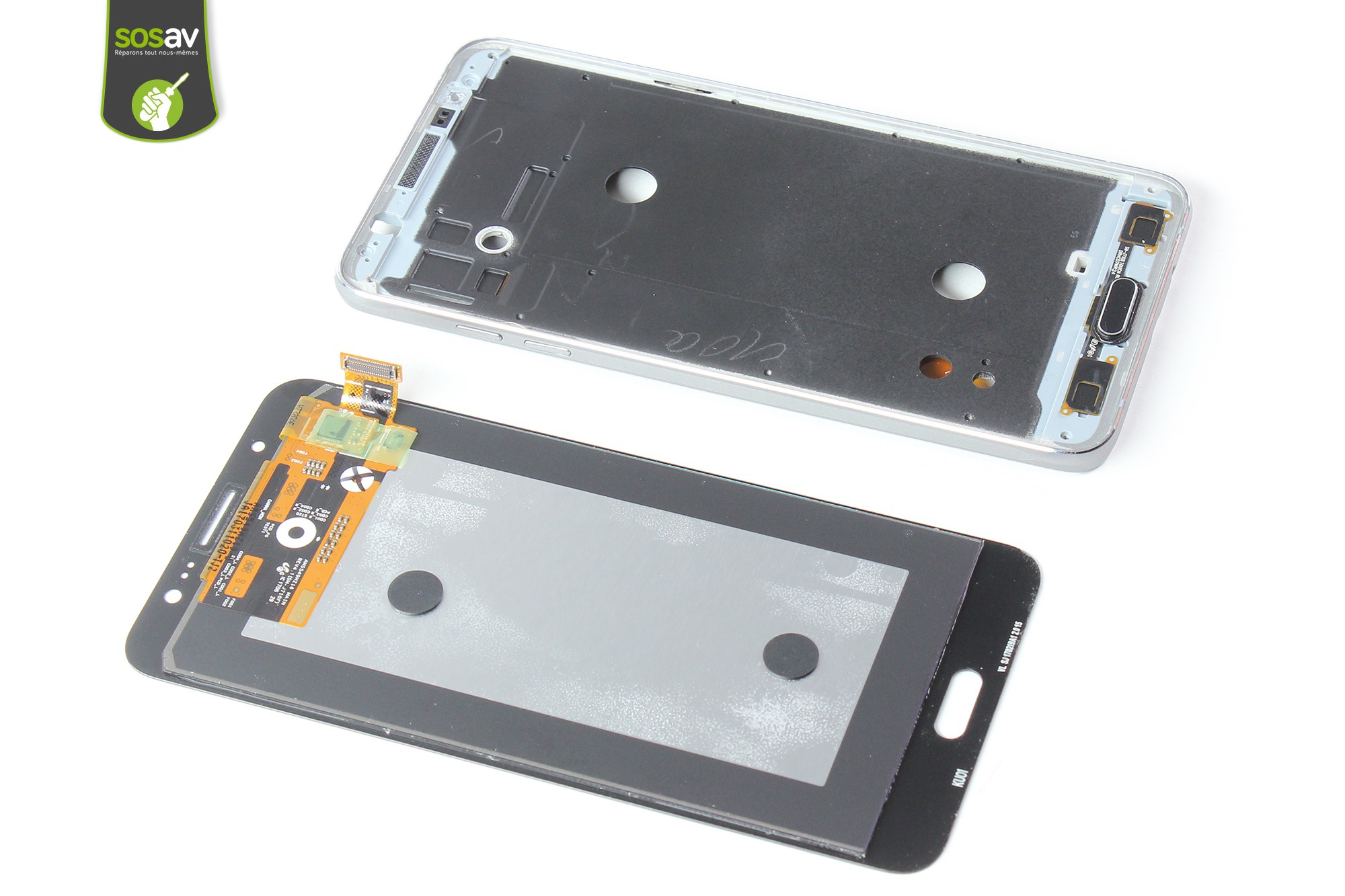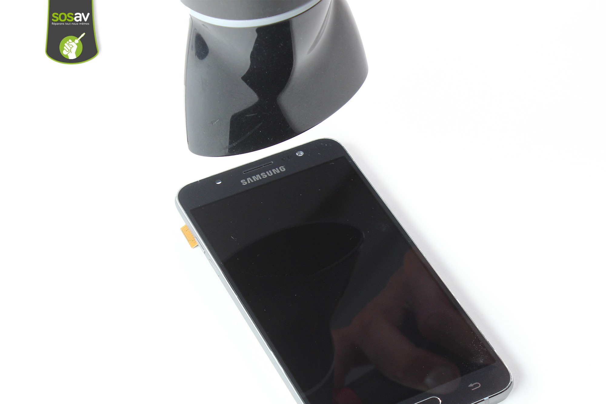 Prise jack cassée ? Le bouton home de votre Samsung Galaxy J7 2016 ne répond plus correctement ? Marre de devoir forcer pour sortir de vos applications à cause d'un bouton home défaillant ou fonctionnant très mal ? Les touches tactiles du bas ne fonctionnent plus correctement ? Ce souci vient certainement de votre nappe bouton home / tactile et prise jack J7 2016 ! Cette nappe se glisse sous le bouton home et les touches tactiles avec la prise jack de l'autre côté. Si vous devez remplacer cette nappe, les techniciens de SOSav vous aident pas à pas dans cette démache, en toute simplicité grâce à ce guide de réparation.