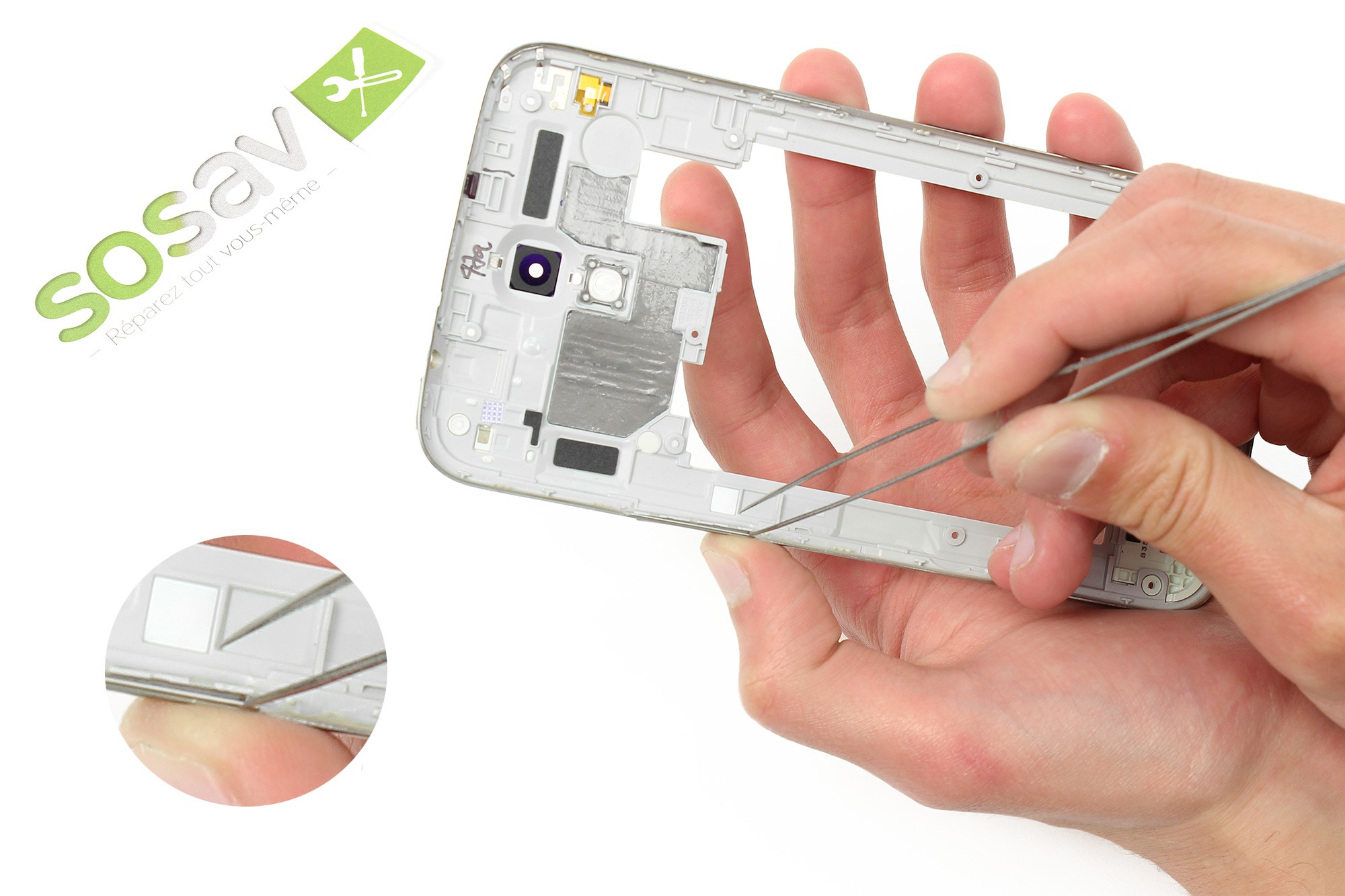 Cette opération permet de séparer le châssis interne du reste du téléphone.