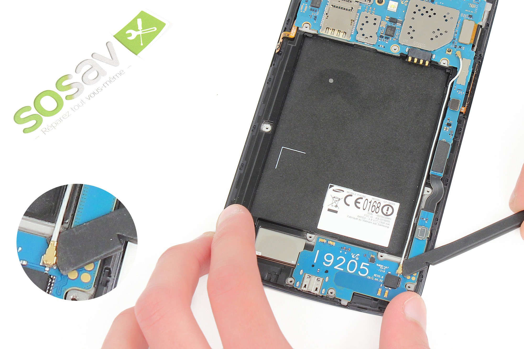 Cette opération permet de séparer le châssis interne du reste du téléphone.