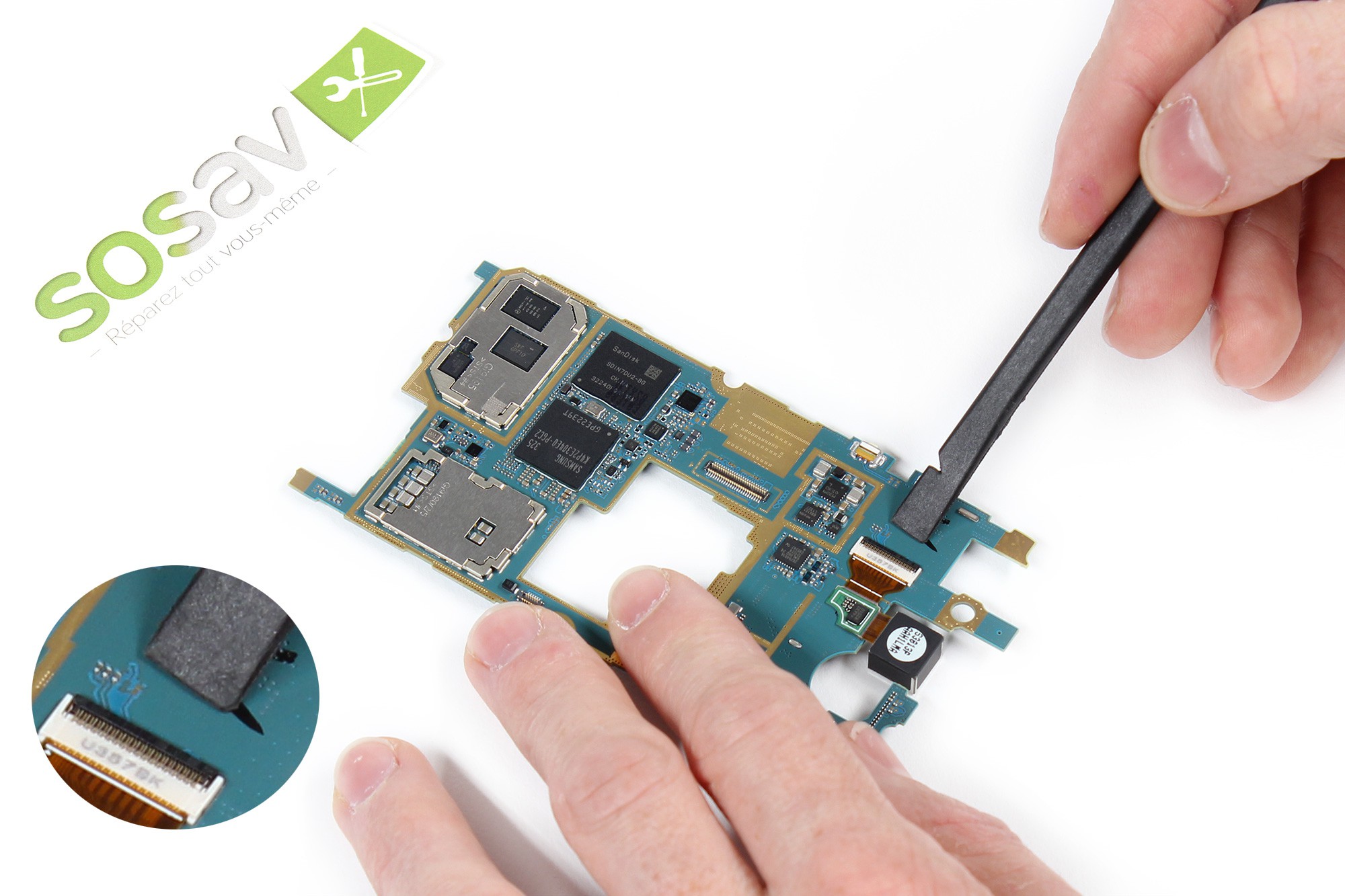 Soulevez donc délicatement le loquet du connecteur, afin de libérer la nappe de la caméra arrière de la carte-mère.