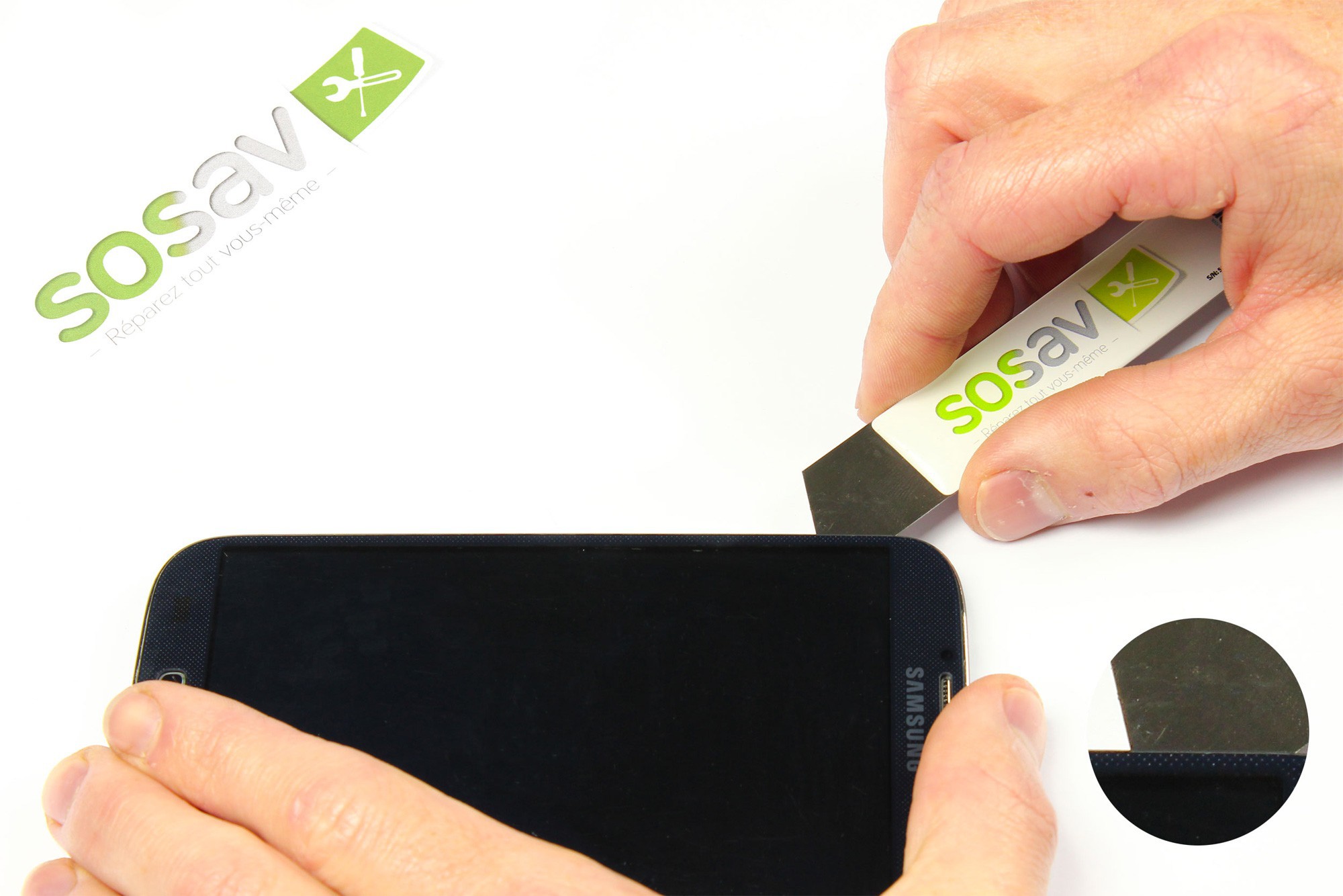 Vous pouvez à présent délicatement soulever la vitre de votre Galaxy S4.