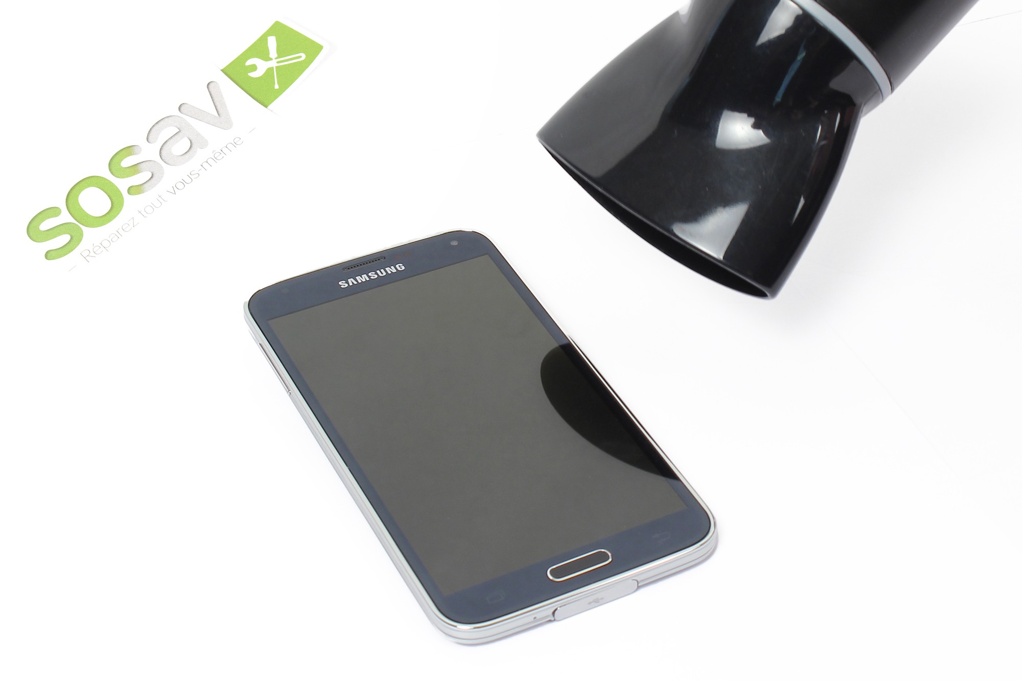 L'écran du Galaxy S5 est collé au châssis interne. Afin de pouvoir accéder à l'intérieur du téléphone il est donc nécessaire de chauffer cette vitre pour "ramolir" la colle.