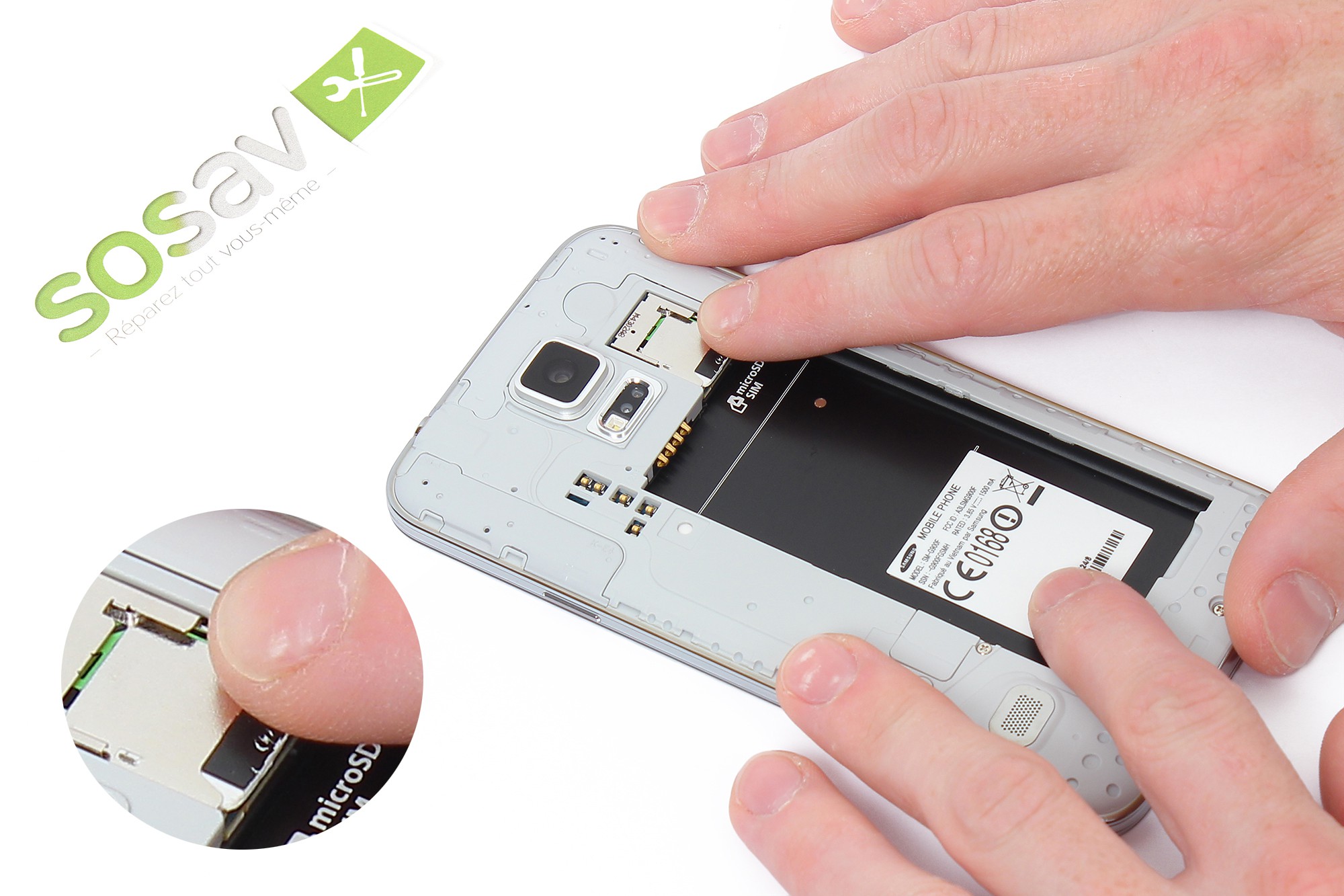 La carte micro SD de votre Galaxy S5 est désormais démontée.