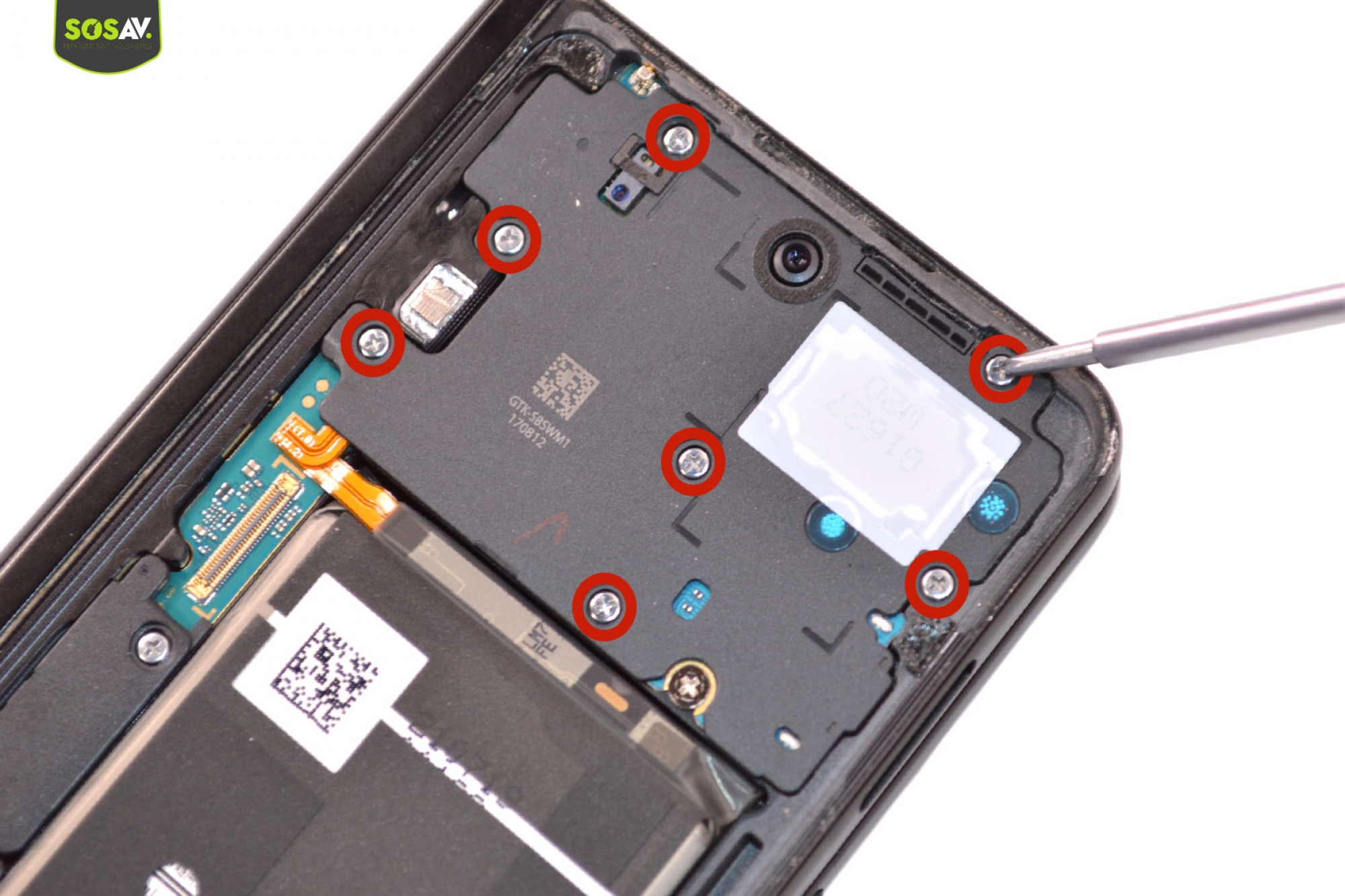 Une fois les vis retirées, vous pouvez ôter la plaquette antenne NFC du téléphone.