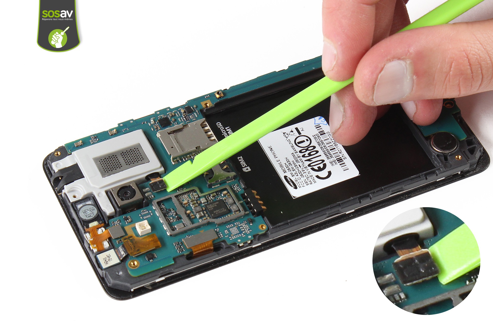 Suivez les conseils des experts de SOSav à travers ce guide de réparation pour vous aider à changer le haut-parleur externe / prise jack vous-même à un tarif jusqu'à trois fois moins cher que de passer par un professionnel.