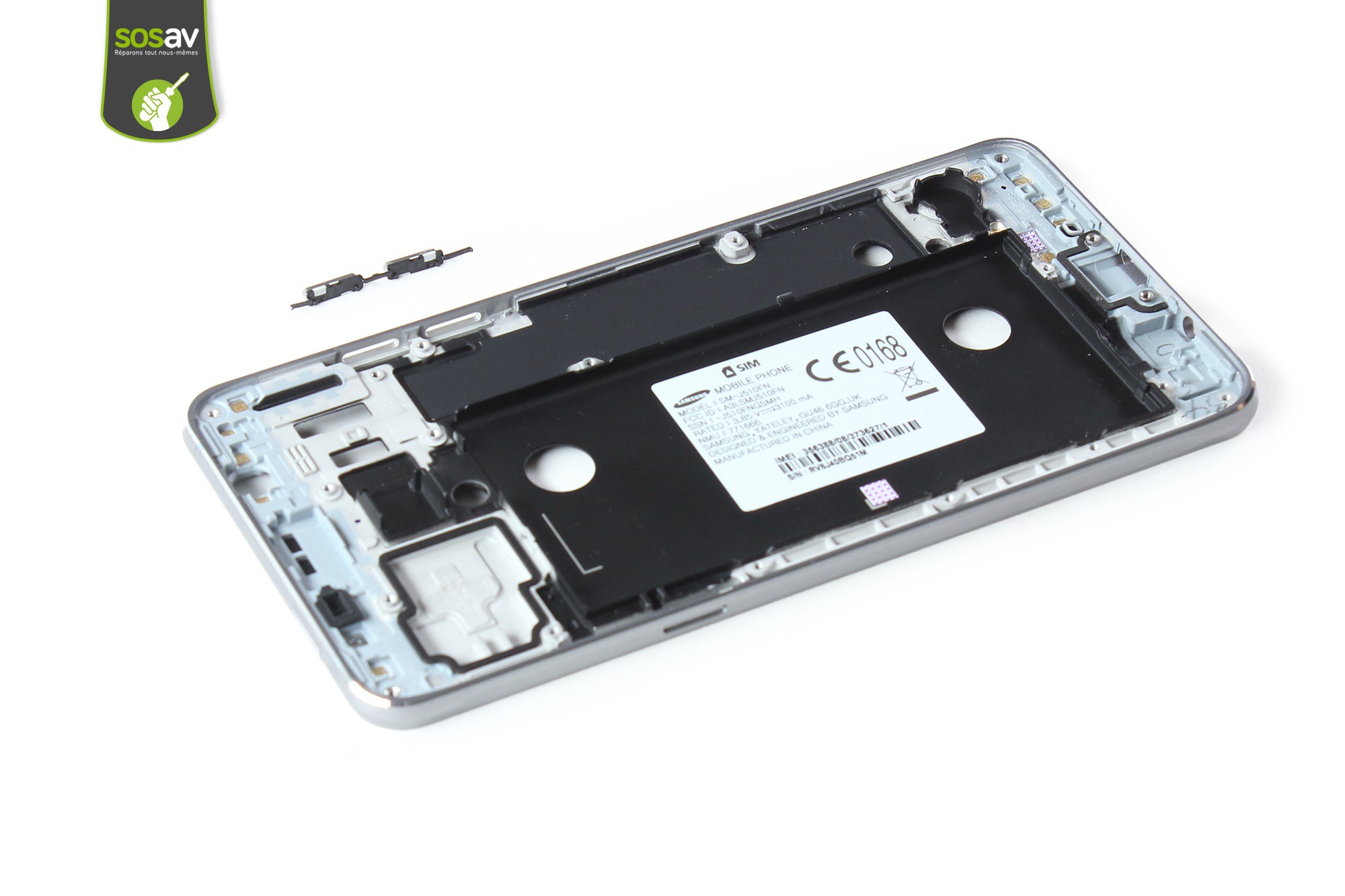 Le châssis complet Galaxy J5 2016 est désormais démonté.Procédez à son remplacement par un châssis neuf si nécessaire.