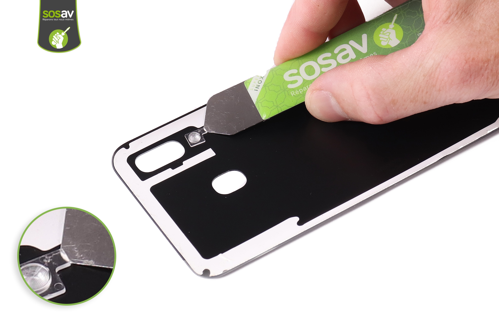 Nos experts SOSav vous ont préparé ce guide de réparation Galaxy A20, illustré et commenté, pour vous permettre de réparer votre vitre arrière Galaxy A20 facilement. Vous avez juste à suivre les différentes étapes. En plus de ça vous aurez réalisé des économies en évitant de passer par un professionnel, mais aussi un geste écologique.