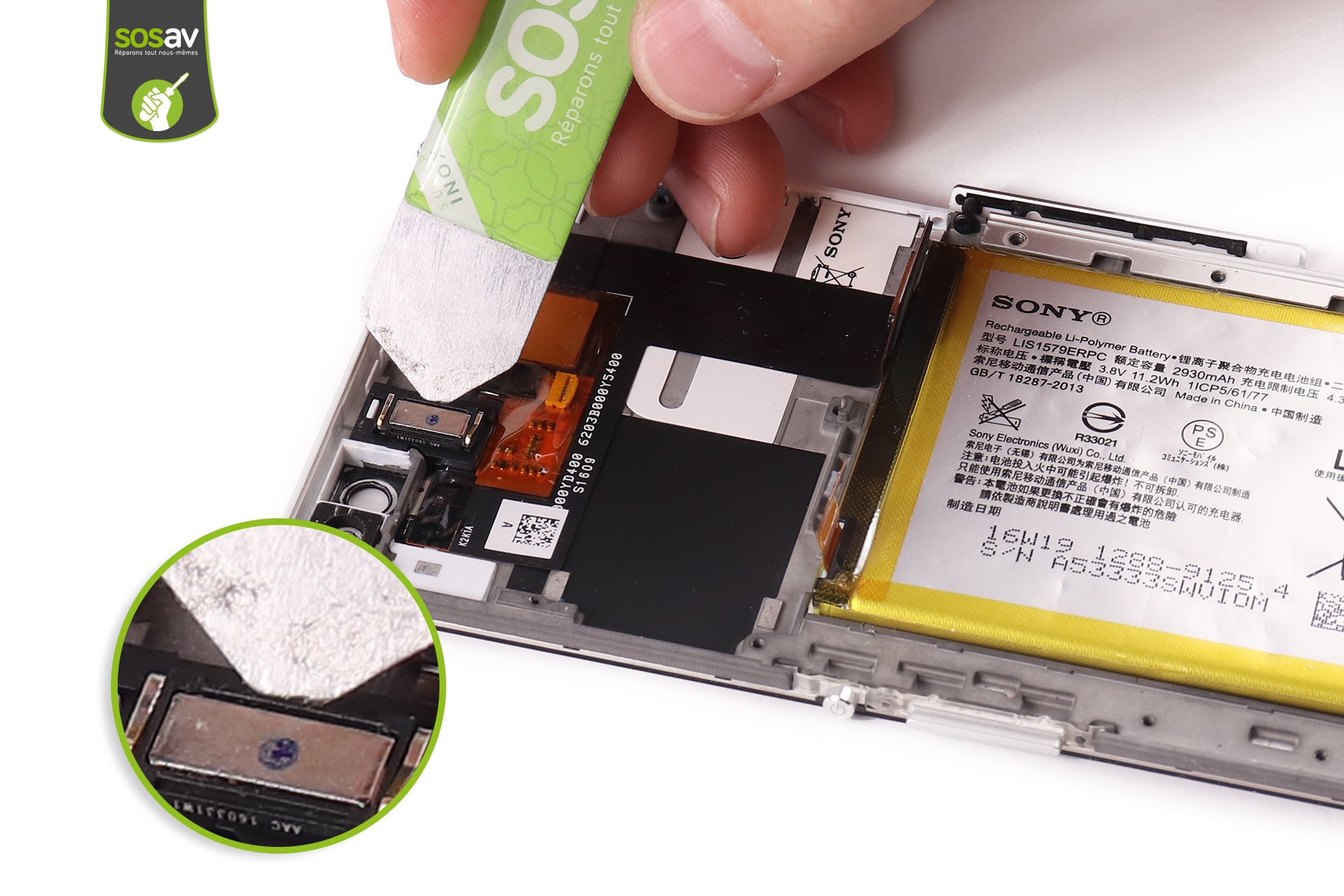 Le haut-parleur interne Xperia C5 Ultra est extrait.En cas de problème de son, suivez ce tuto gratuit pour le remplacer facilement !