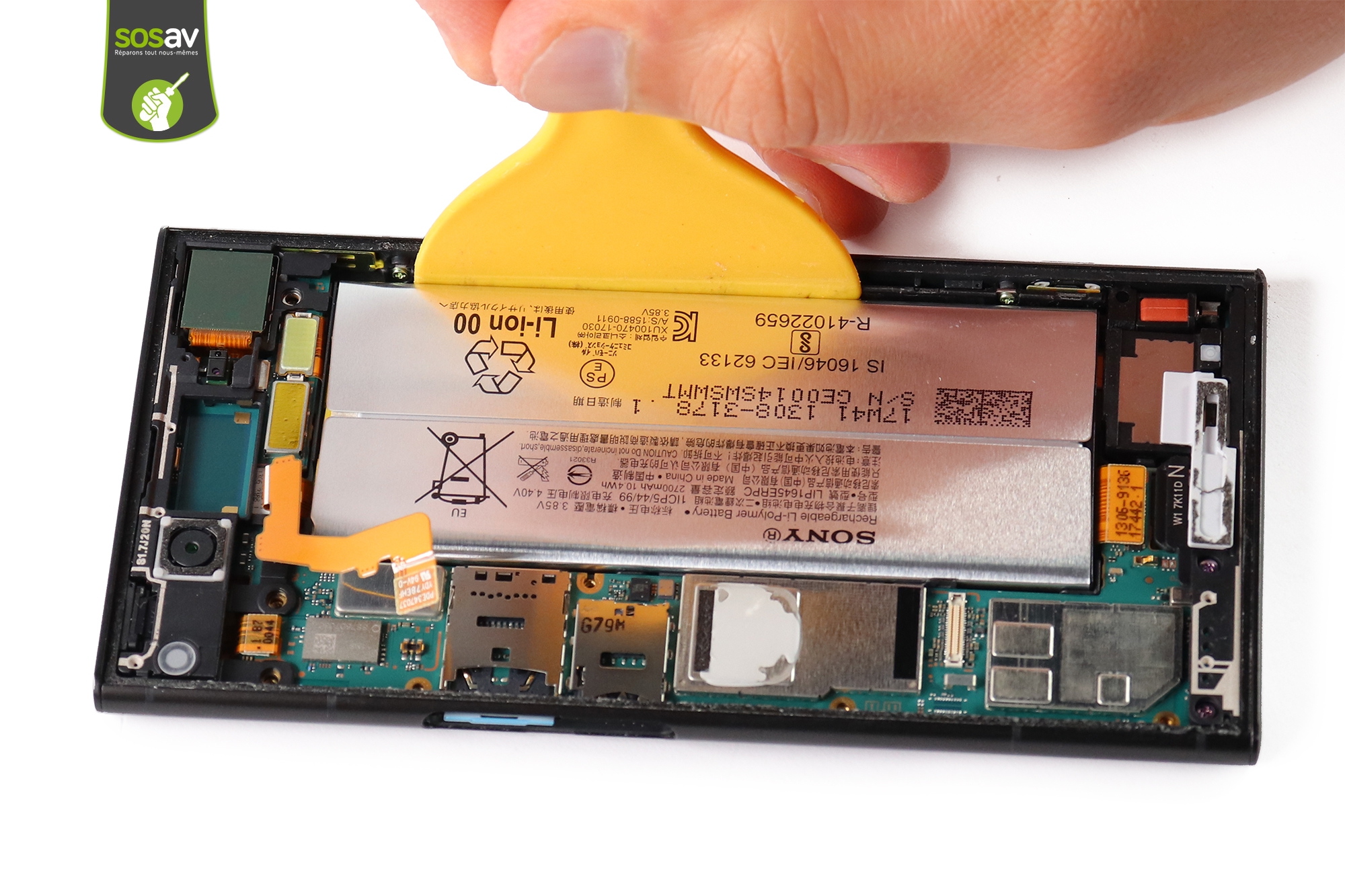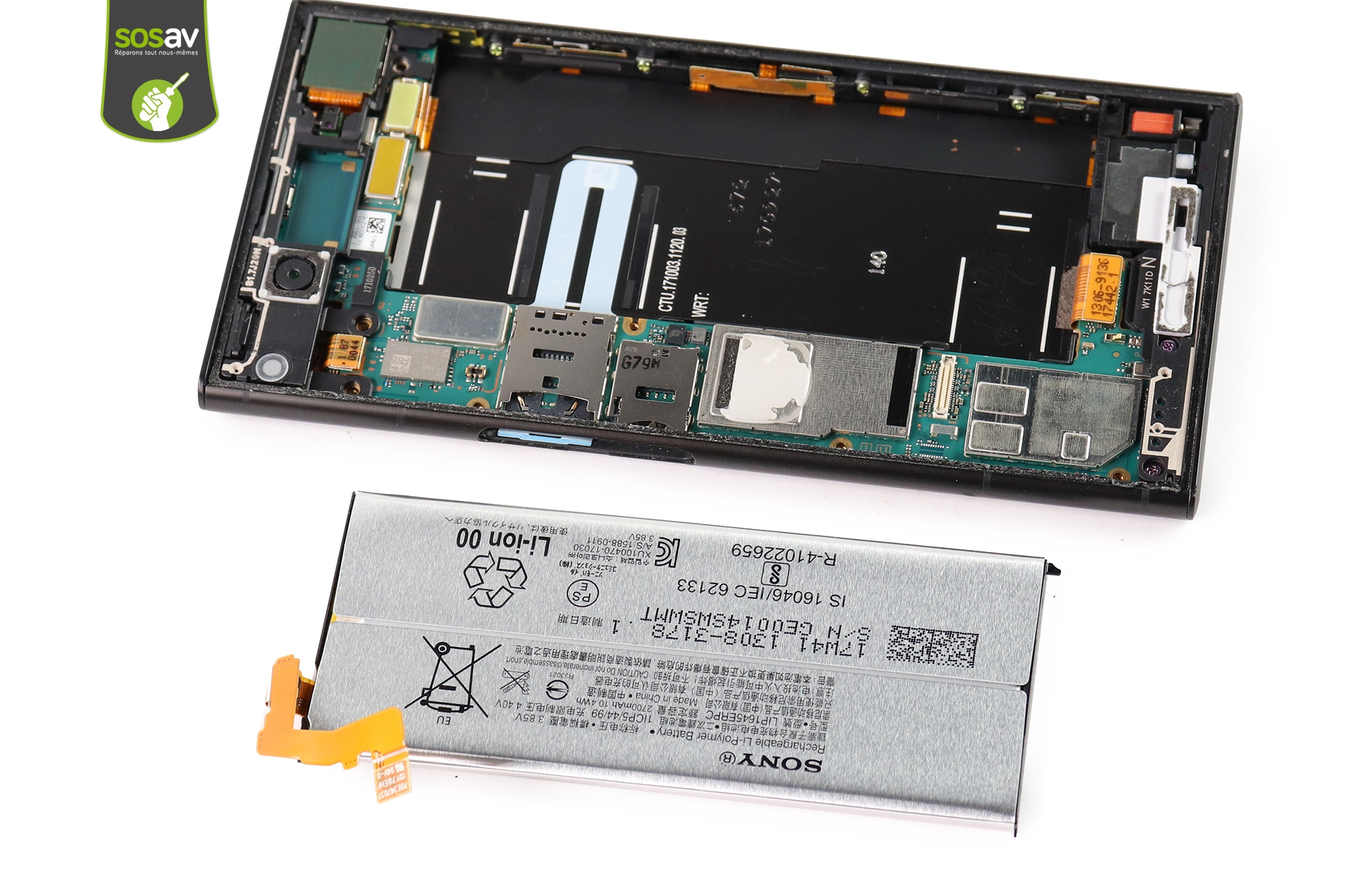 La batterie Xperia XZ1 est déposée.