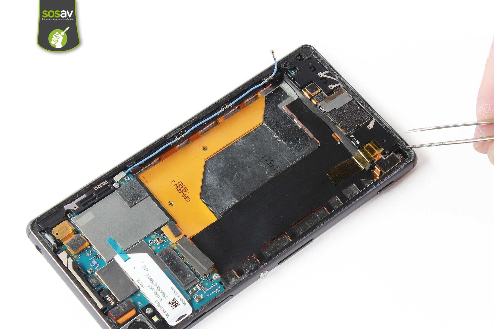 Reprenez la pince pour extraitre l'antenne Bluetooth "Row 4".