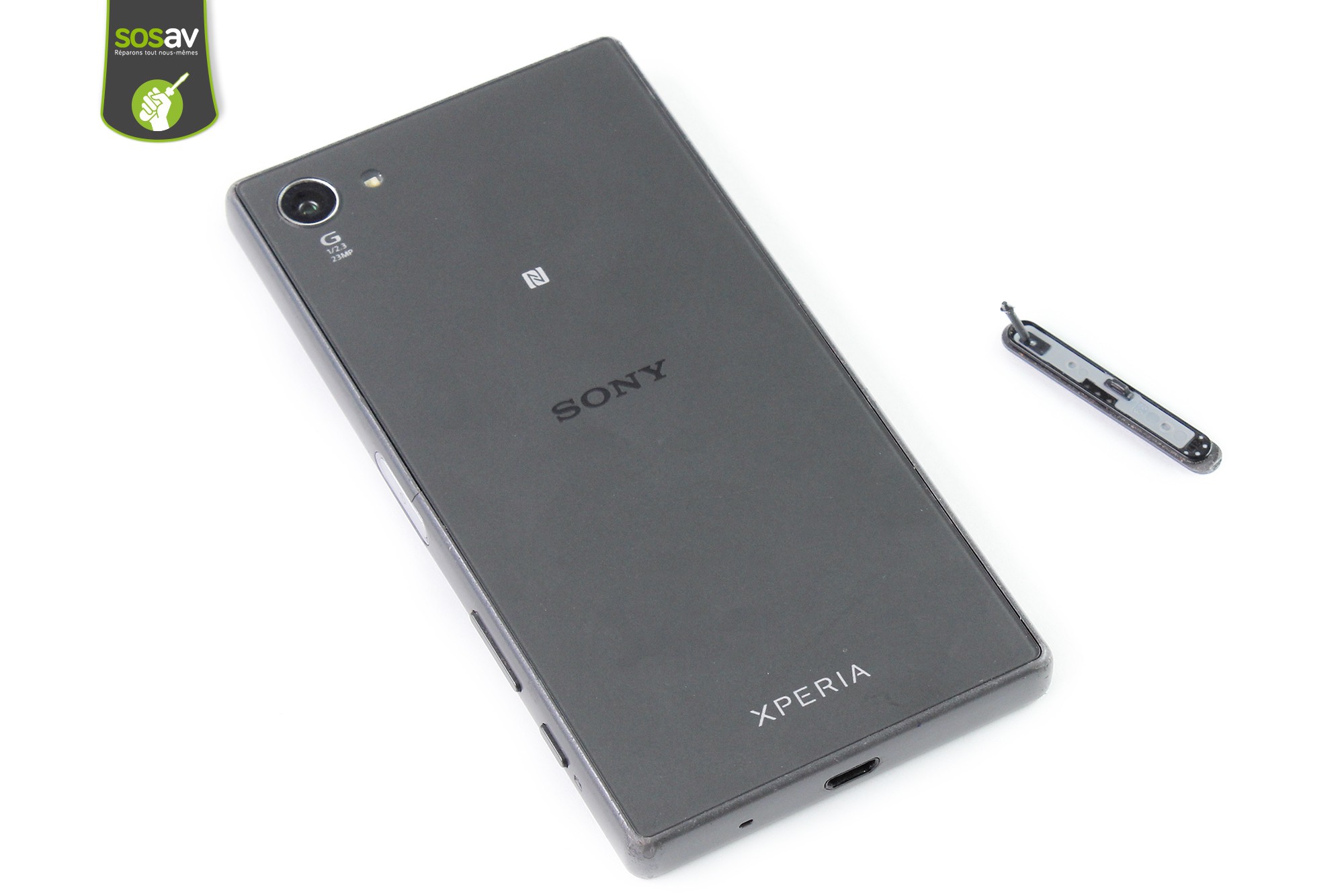 Le cache micro SD / SIM de votre Sony Xperia Z5 compact est complètement rayé, a perdu ses couleurs ? En suivant ce guide de réparation conçu pas les techniciens de SOSav, remplacez-le vous-même en moins de 5 minutes !