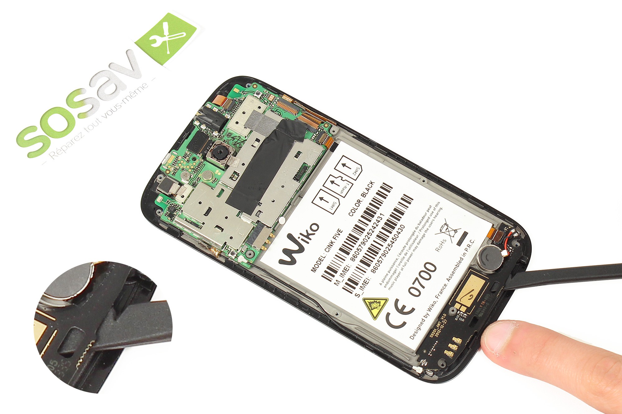 L'ensemble du bas du Wiko Cink Five est désormais démonté.