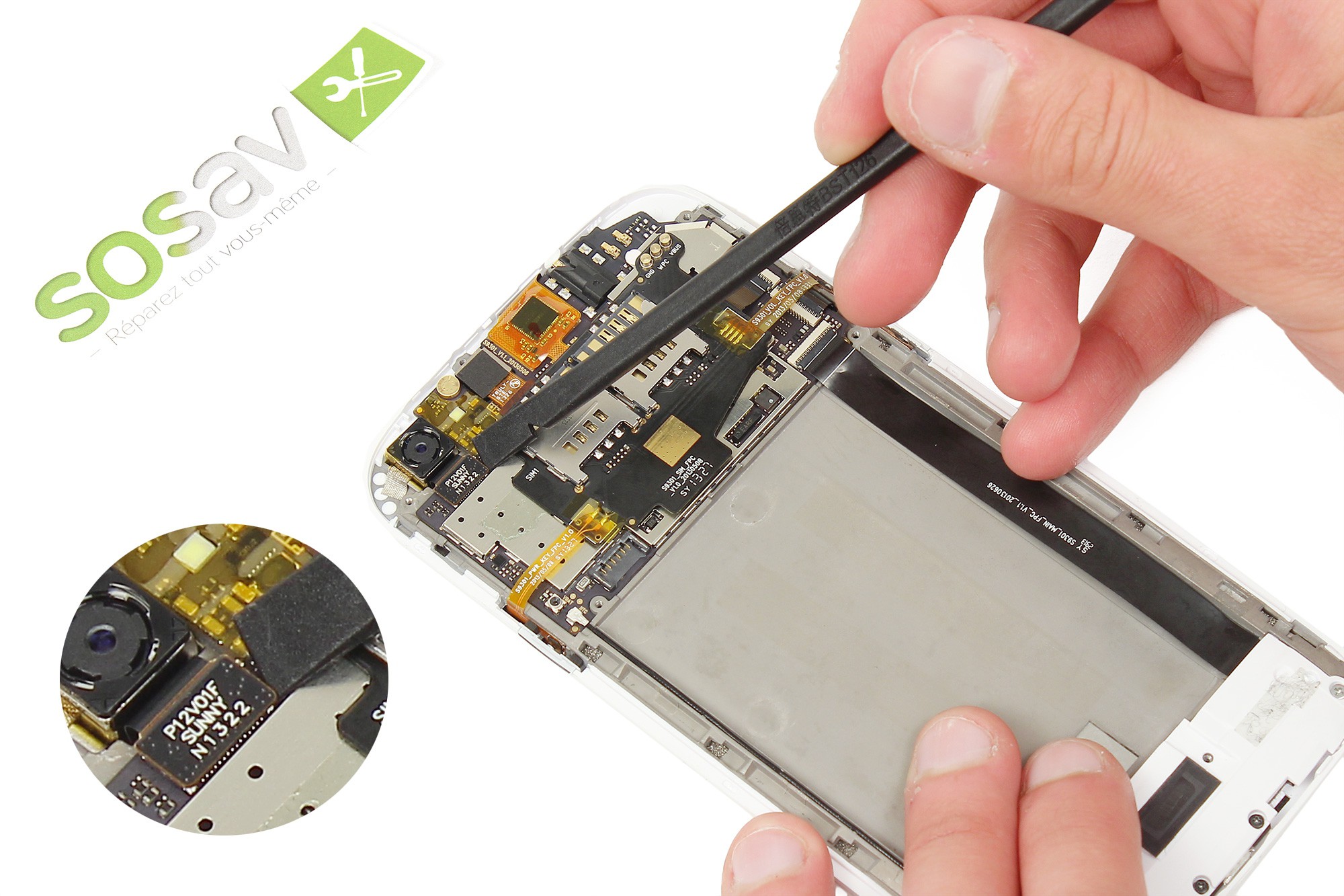 A l'aide de la spatule en nylon, déconnectez le connecteur de la caméra arrière.