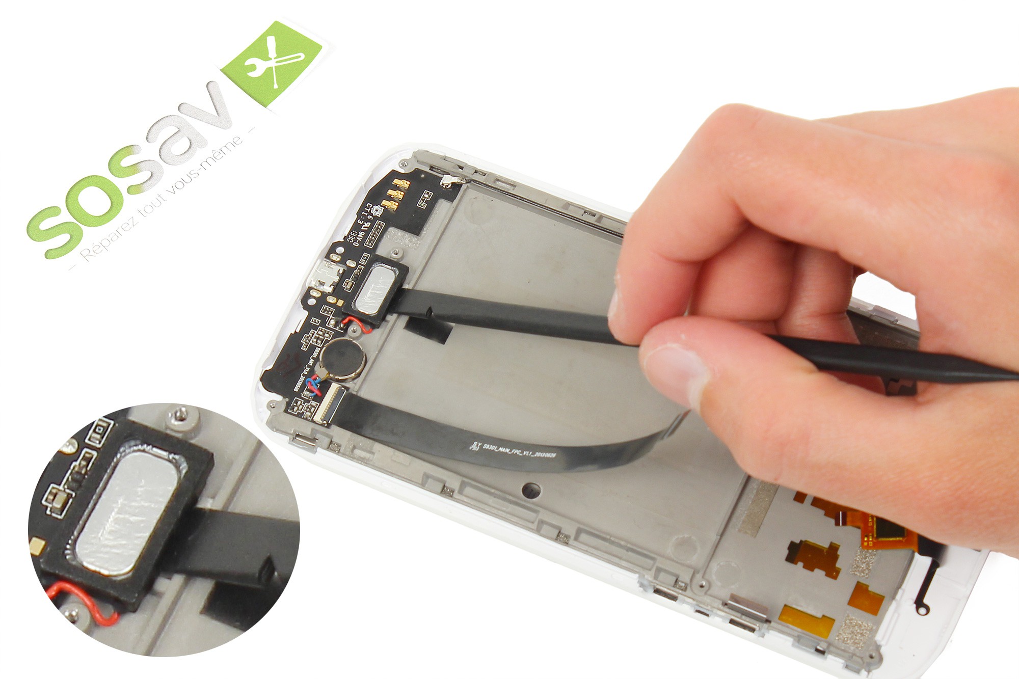 Le haut-parleur interne du Wiko Darkside est désormais démonté.
