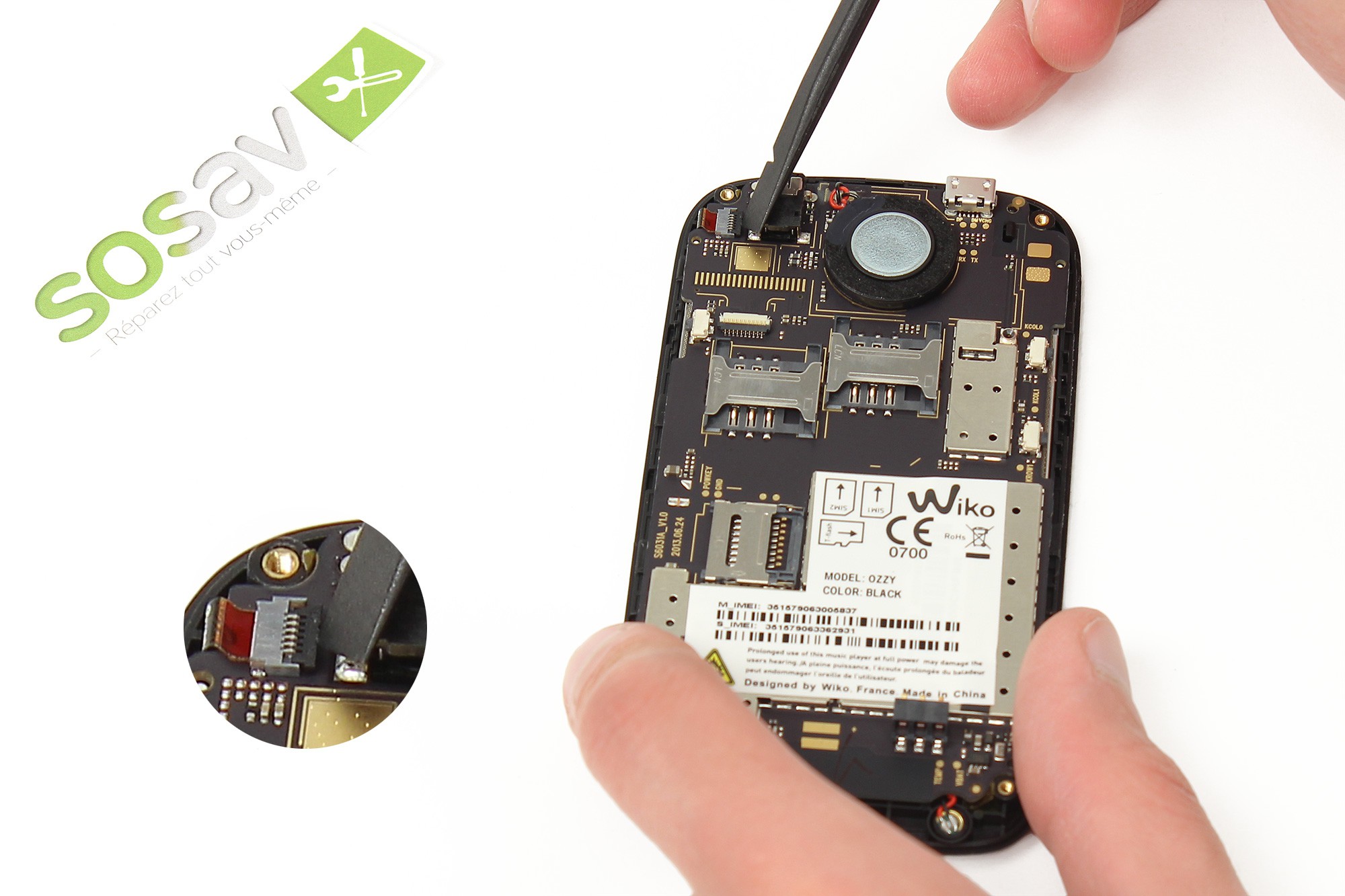 La batterie de votre Wiko Ozzy est désormais démontée.