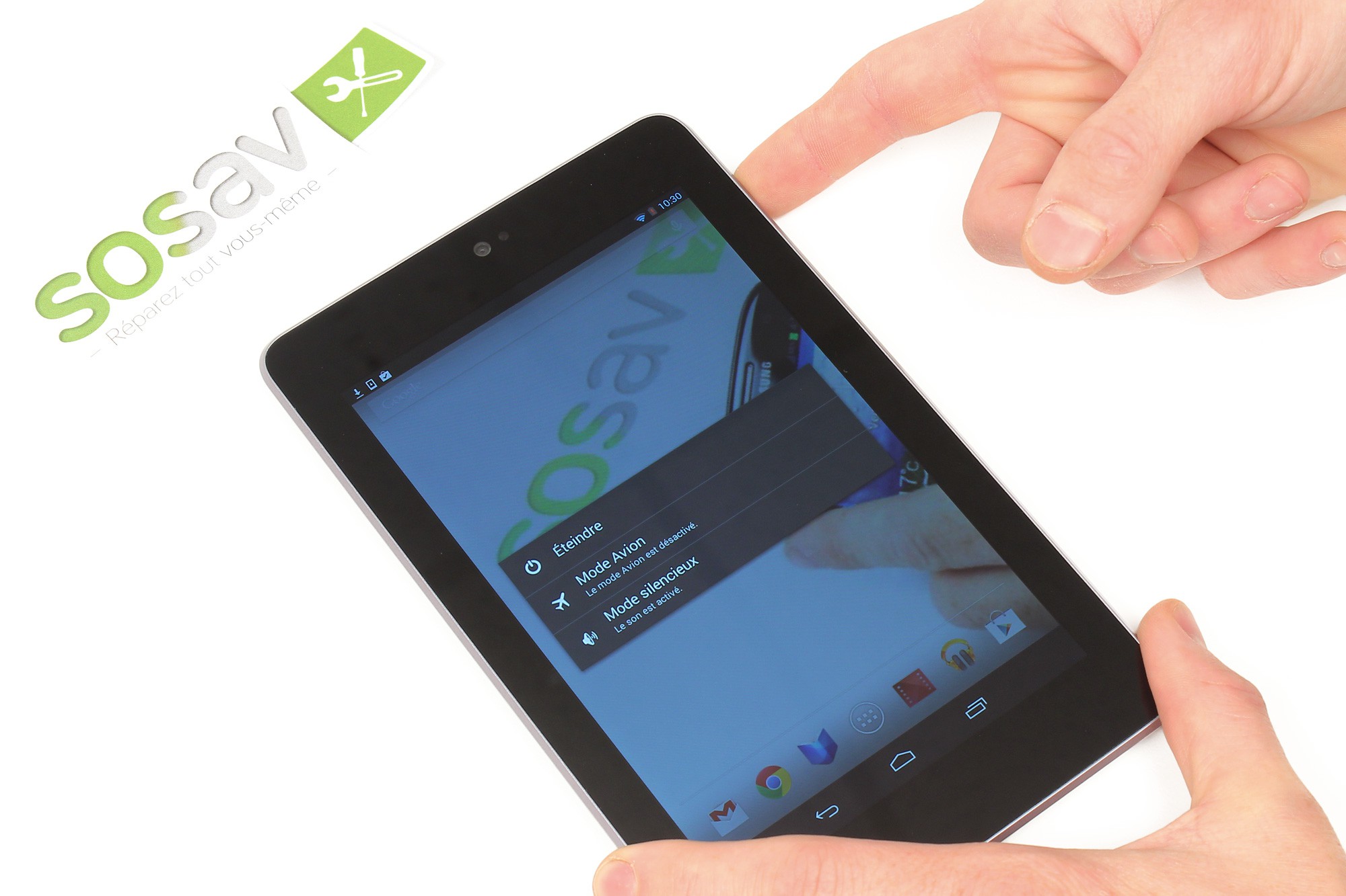 Avant de commencer le changement de la nappe gérant le connecteur de charge ainsi que la prise jack, il est nécessaire, pour des raisons évidentes de sécurité, d'éteindre votre Nexus 7.