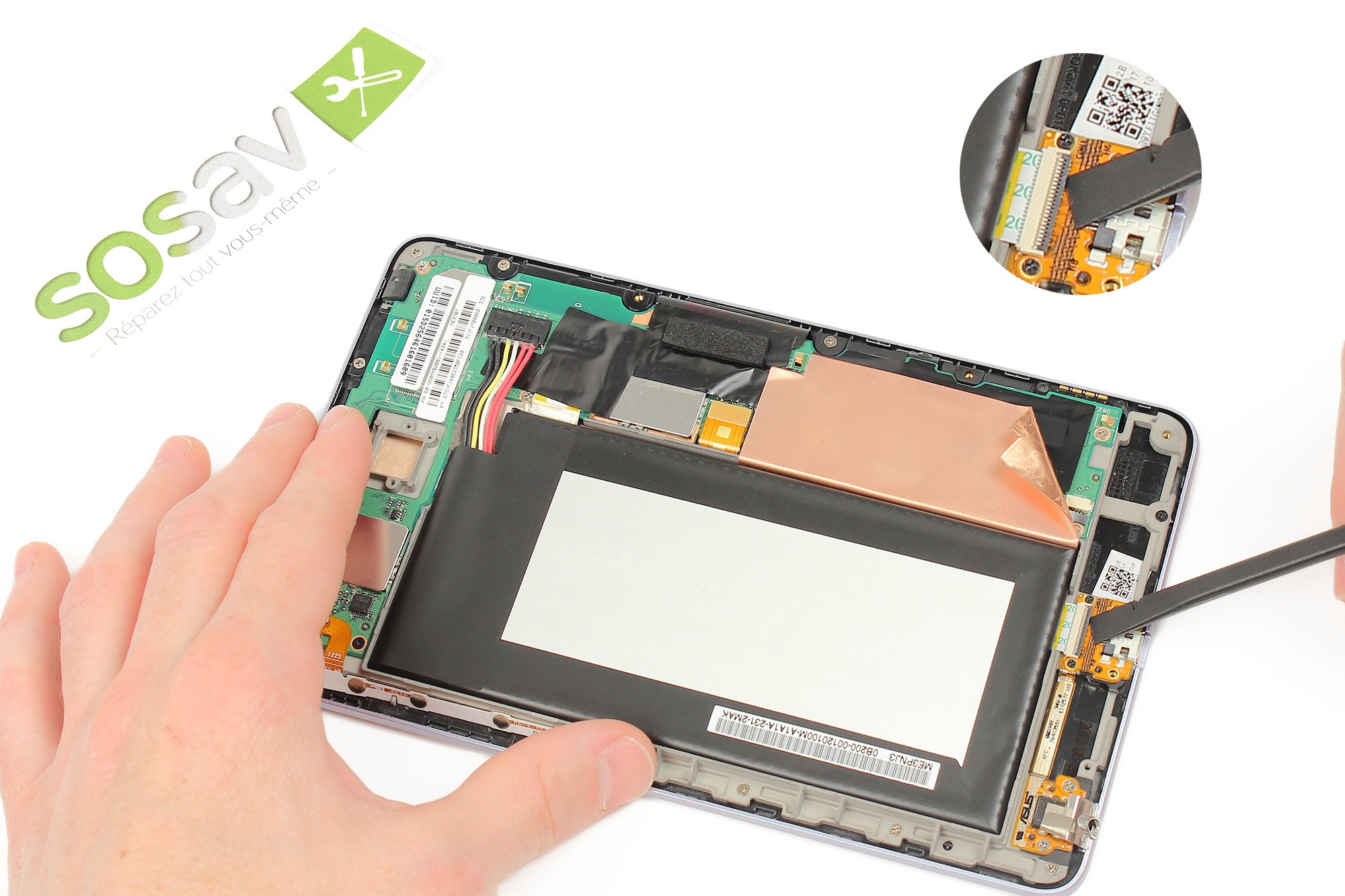 Soulevez le loquet du connecteur afin de libérer la nappe de liaison électrique.