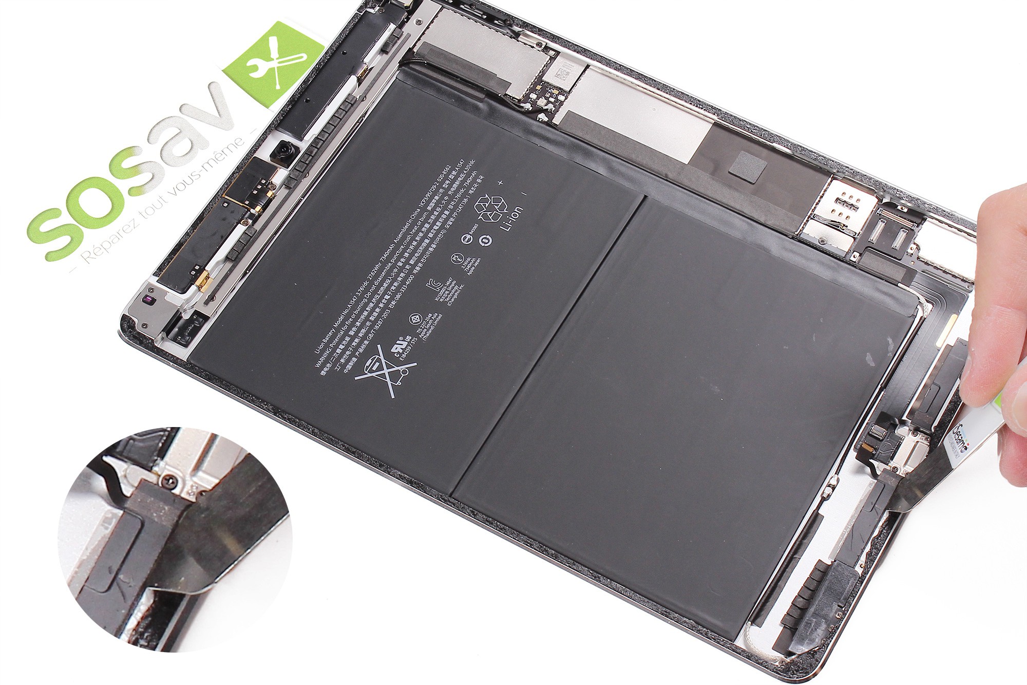 Ne retirez pas l'écran de l'iPad, celui-ci étant encore connecté à la carte mère !