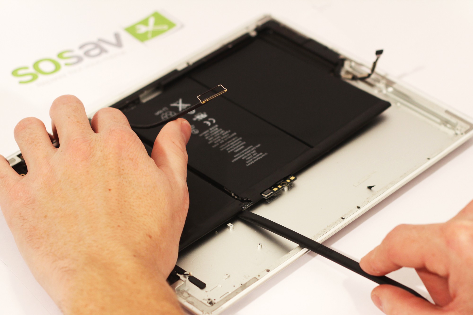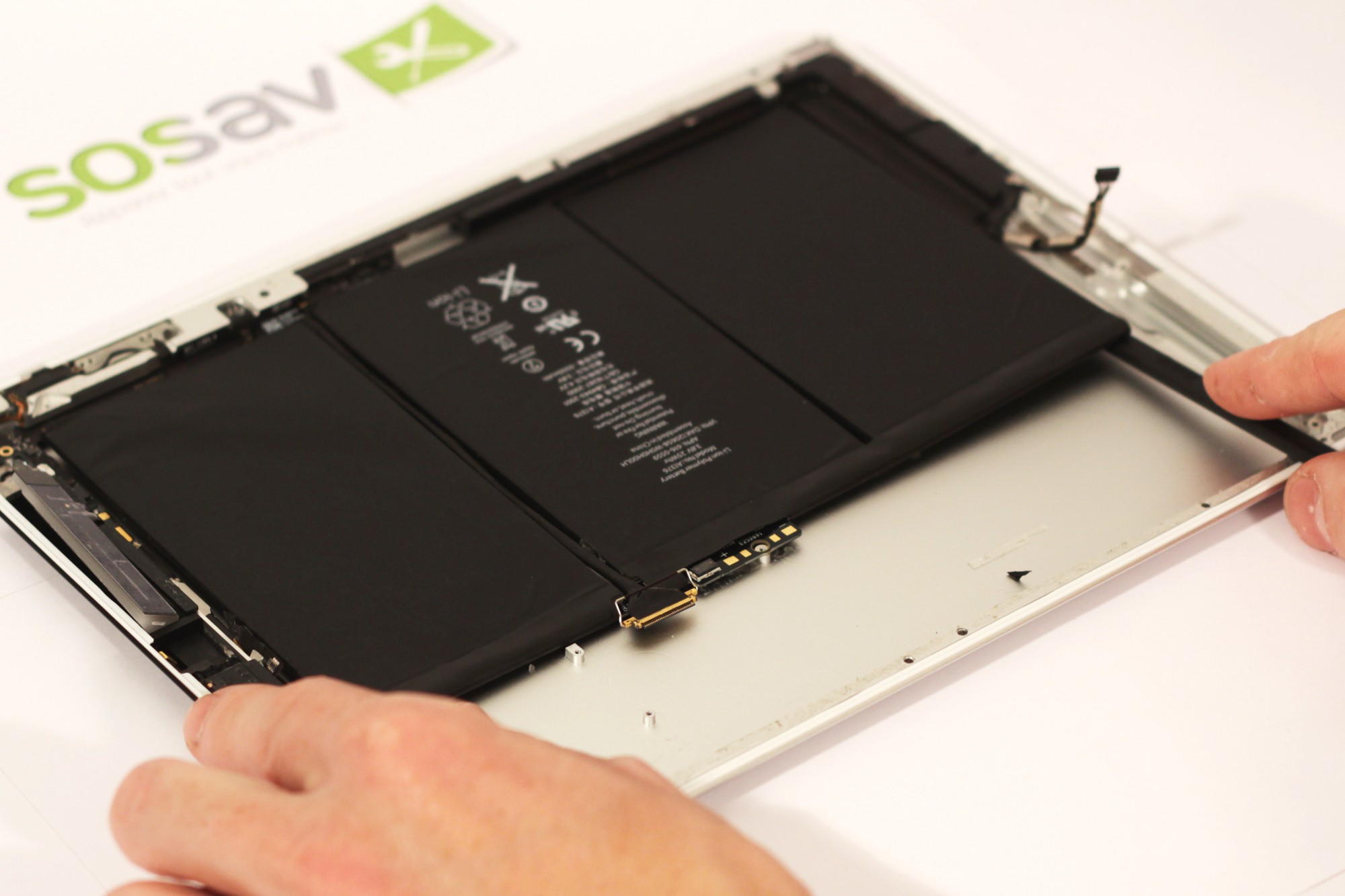 La batterie est attachée à la coque arrière de l'iPad 2 par un adhésif, pour l'enlever il est nécessaire de chauffer l'arrière de votre iPad 2.Pour ceci utiliser un sèche cheveux pour chauffer la coque arrière.