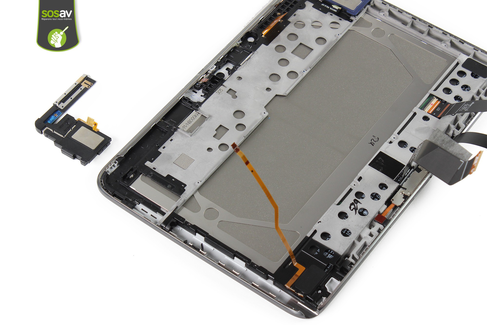 Le haut-parleur droit de votre Galaxy Note 10.1 est désormais démonté.En cas de problème de son, remplacez- le HP droit par un neuf.