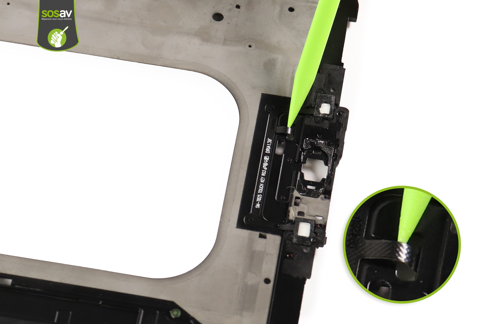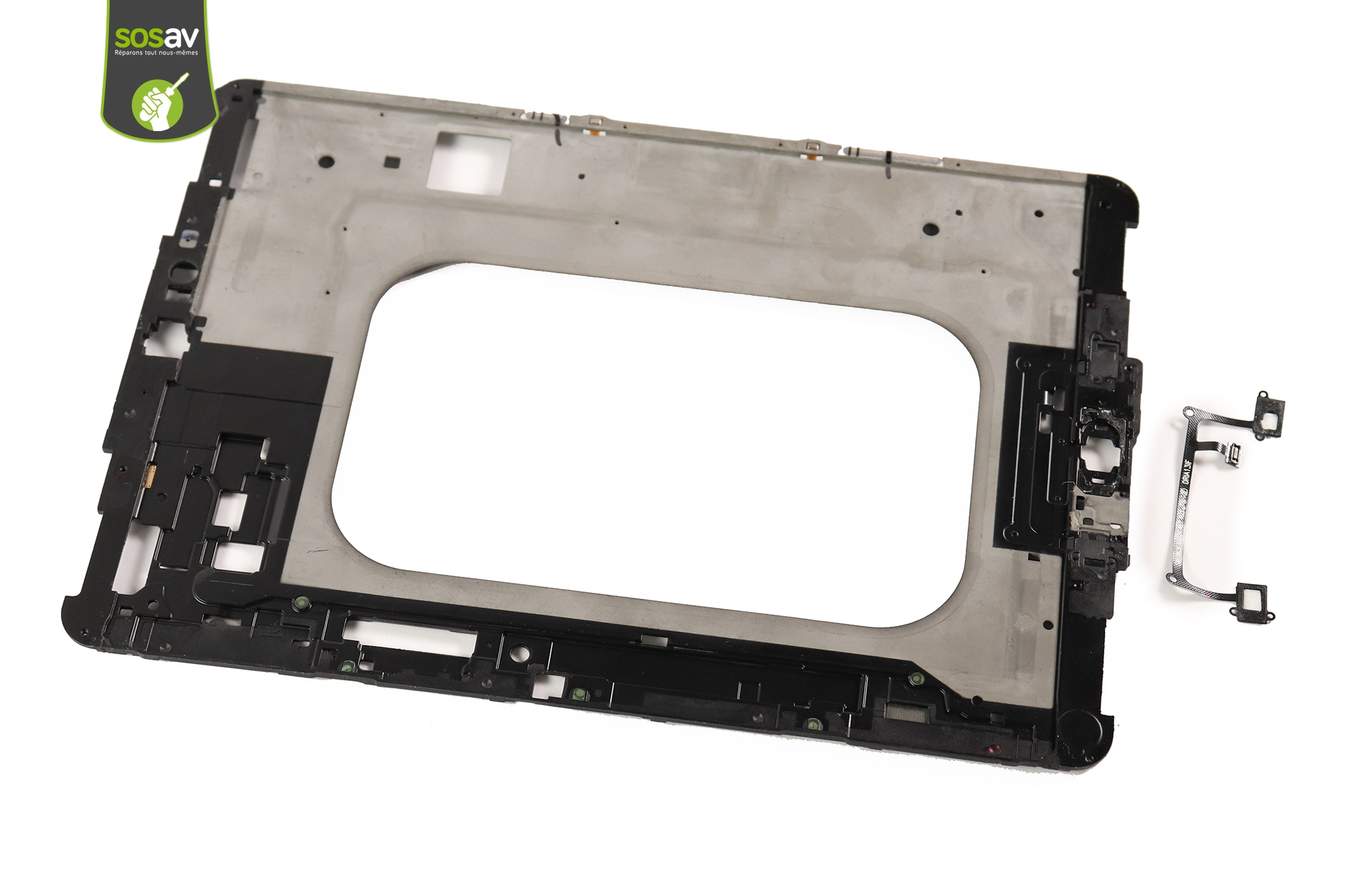 La nappe boutons tactiles est extraite.Le châssis interne Galaxy Tab S3 9.7" est entièrement démontée.Suivez ce tuto gratuit pour le remplacer en cas de besoin !
